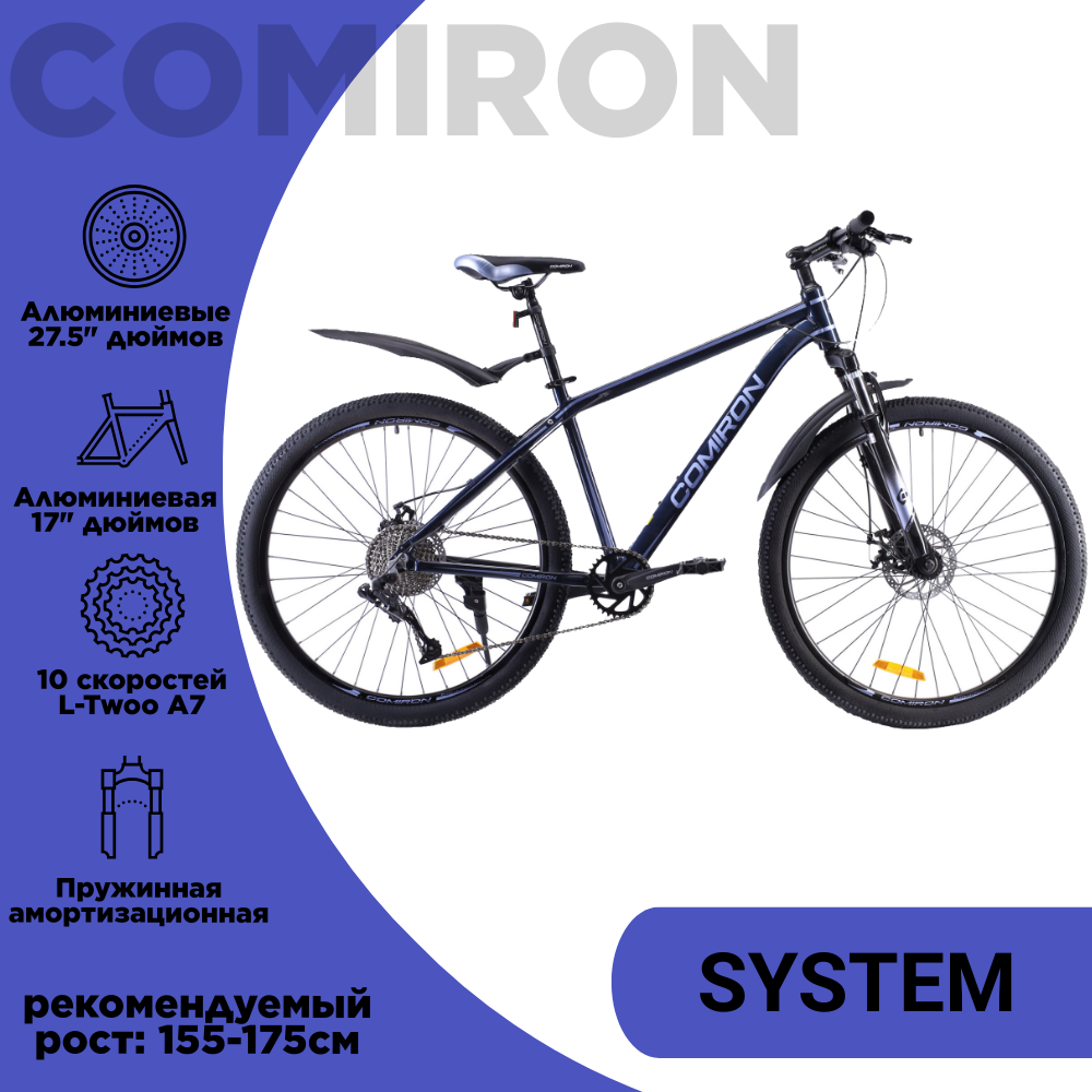 Купить Велосипед взрослый алюминиевый горный 27,5" дюймов. 10-скоростей/ на рост: 155-175см / COMIRON SYSTEM втулки на промподшипниках. синий индиго полар азур