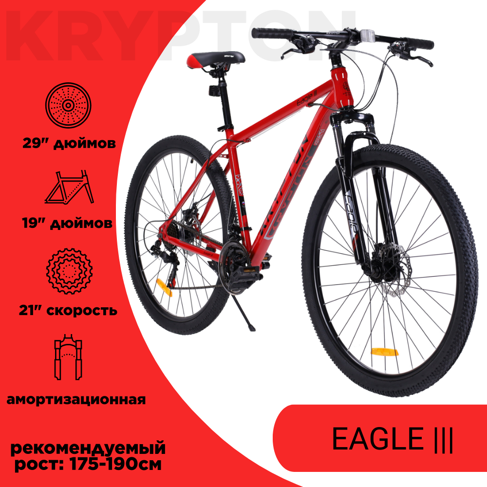 Велосипед взрослый горный 29" дюймов. 21-скорость/ на рост: 175-190см / KRYPTON EAGLE 3 красный dark fire red интересное: