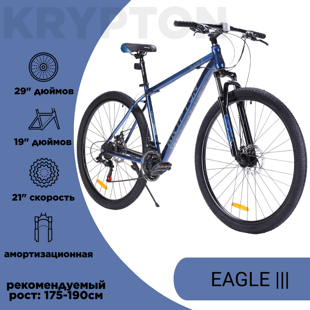 Велосипед взрослый горный 29" дюймов. 21-скорость/ на рост: 175-190см / KRYPTON EAGLE 3 синий opale blue интересное: