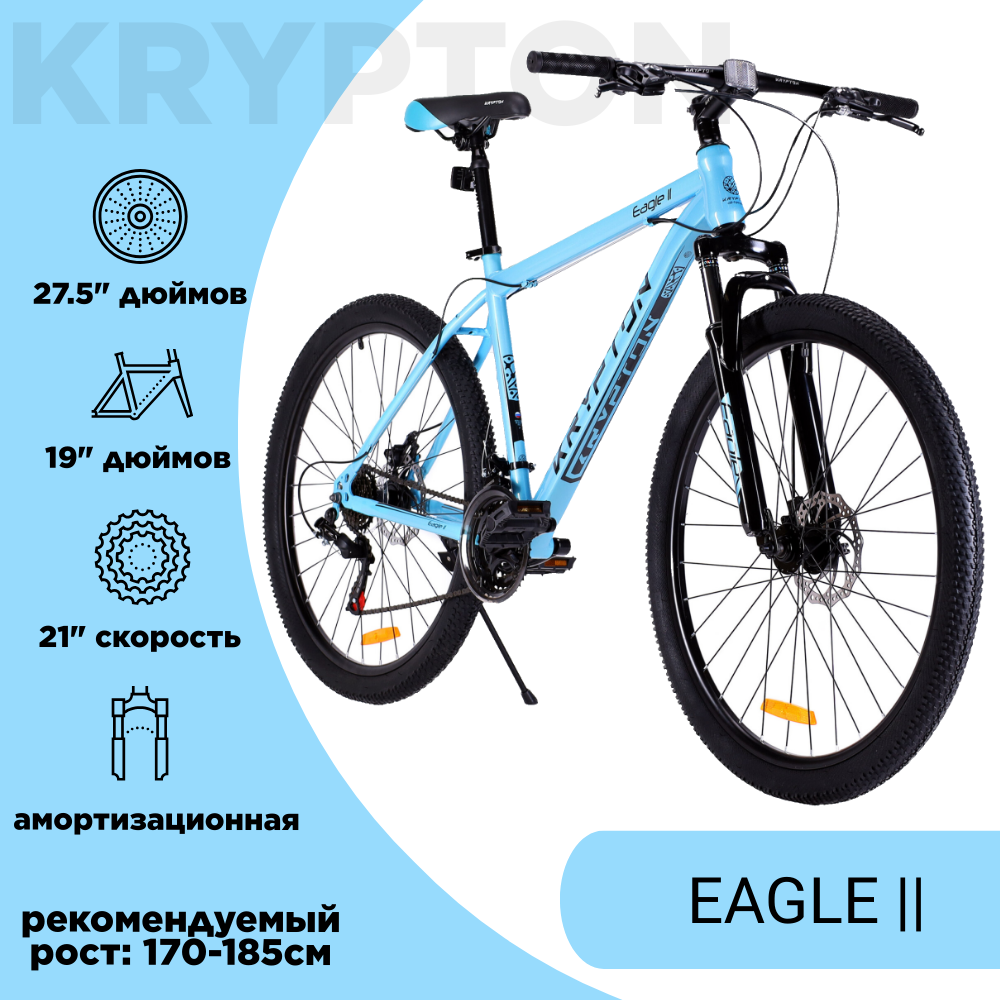 Велосипед взрослый горный 27.5" дюймов. 21-скорость/ на рост: 170-185см / KRYPTON EAGLE 2 синий cosmos river blue интересное: