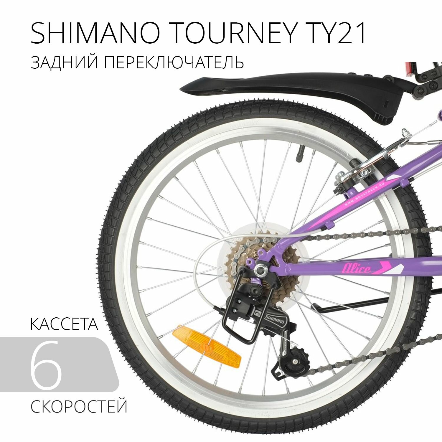 Велосипед для девочки 20 дюймов NOVATRACK ALICE 6 V фиолетовый 6 скоростей, стальная рама на рост 125-130 см, скоростной велик для детей 7 лет/8 лет/9 лет интересное: