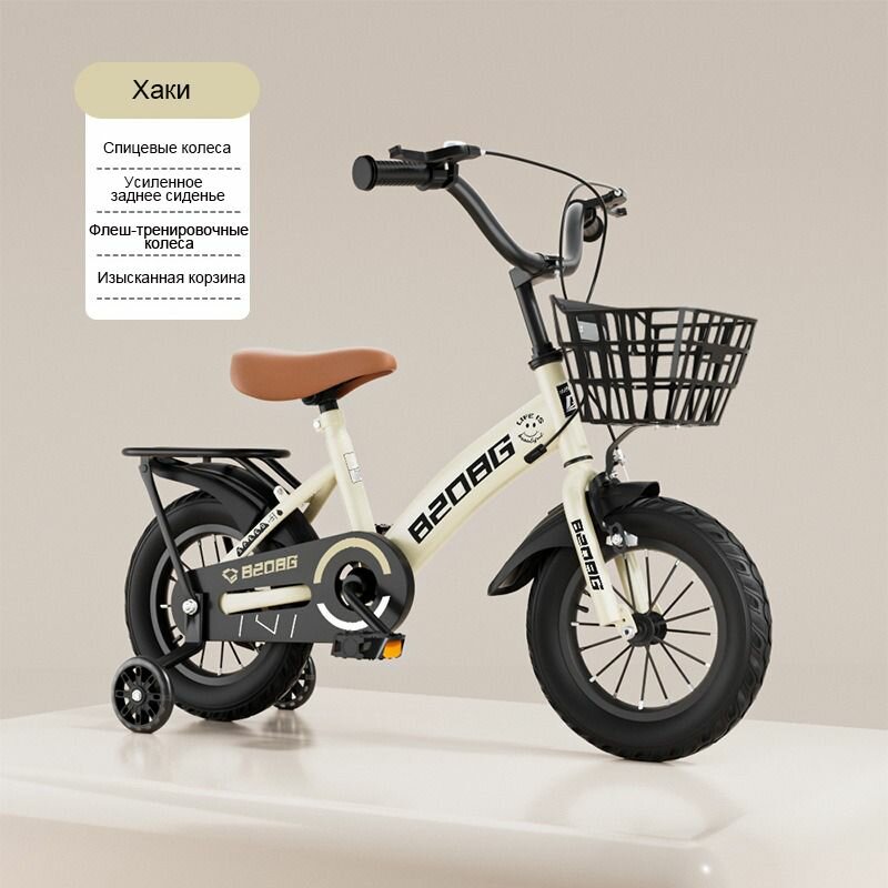 СохранитьДетский велосипед ZT-818 12 дюймов со вспомогательными колесами для мальчиков и девочек 3-10 лет, хаки интересное: