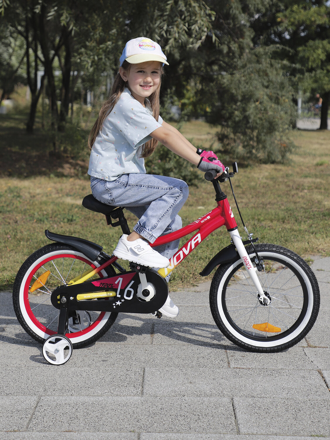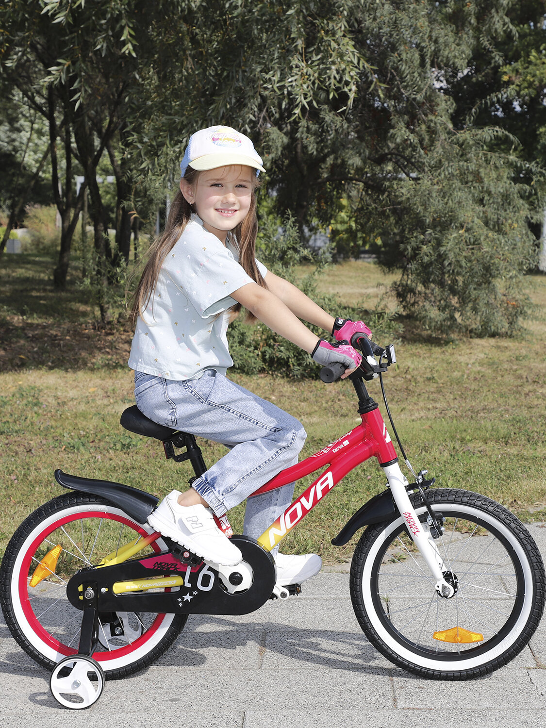Велосипед NOVATRACK 16" KATRINA алюм, красный-жёлтый, полная защ. цепи, пер. руч, зад. нож. тормоз интересное: