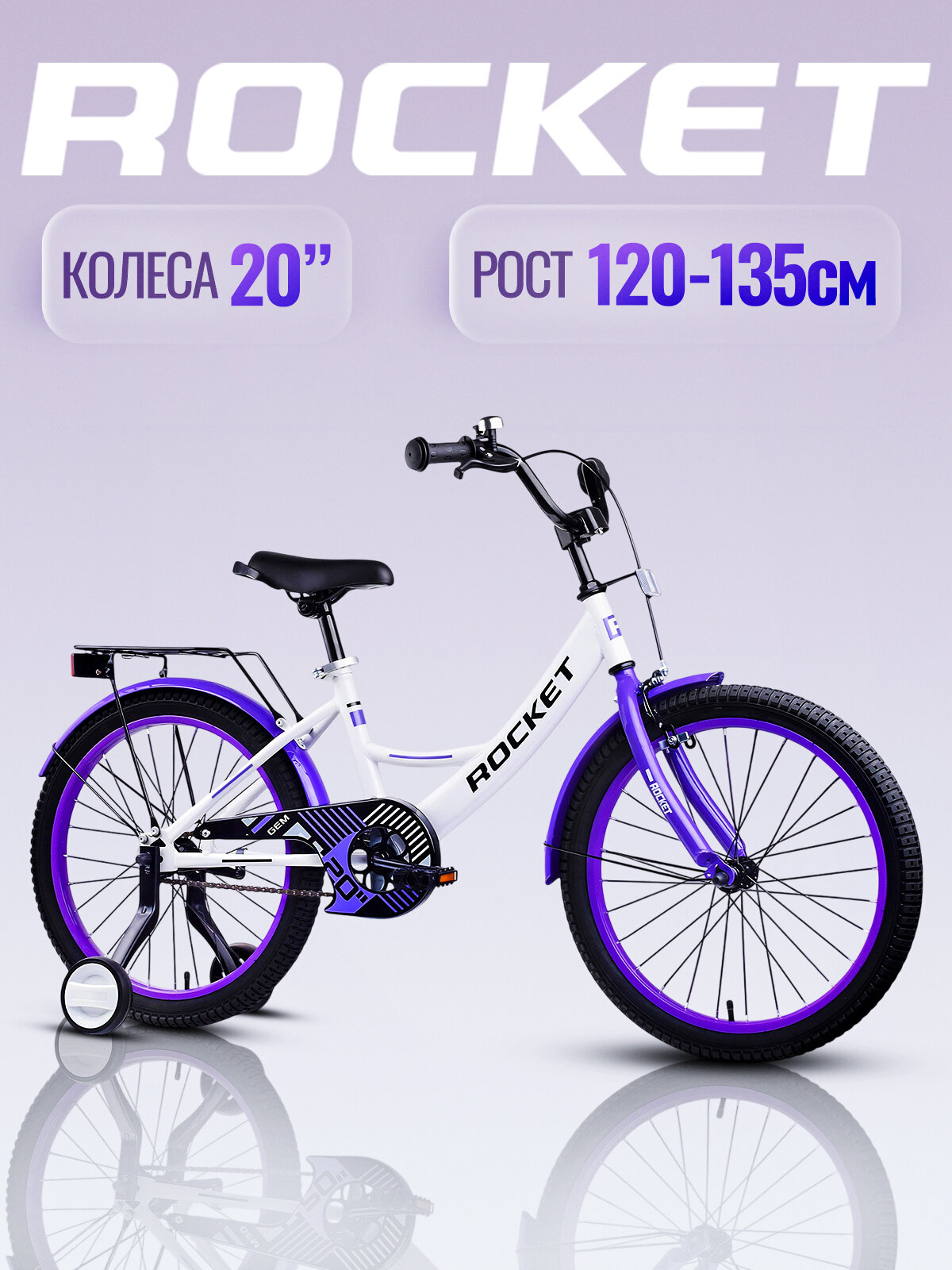 Велосипед двухколесный 20" Rocket Gem, для детей 6-8 лет, ростом от 120 до 135 см. цвет белый/фиолетовый интересное: