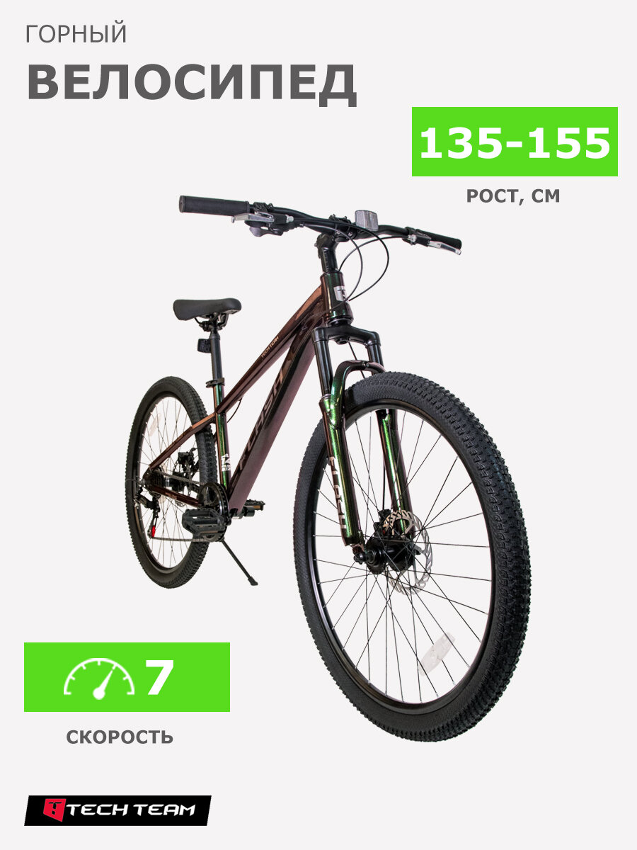 Велосипед горный TechTeam FLASH 26"х14", зелёный хамелеон 2024 интересное: