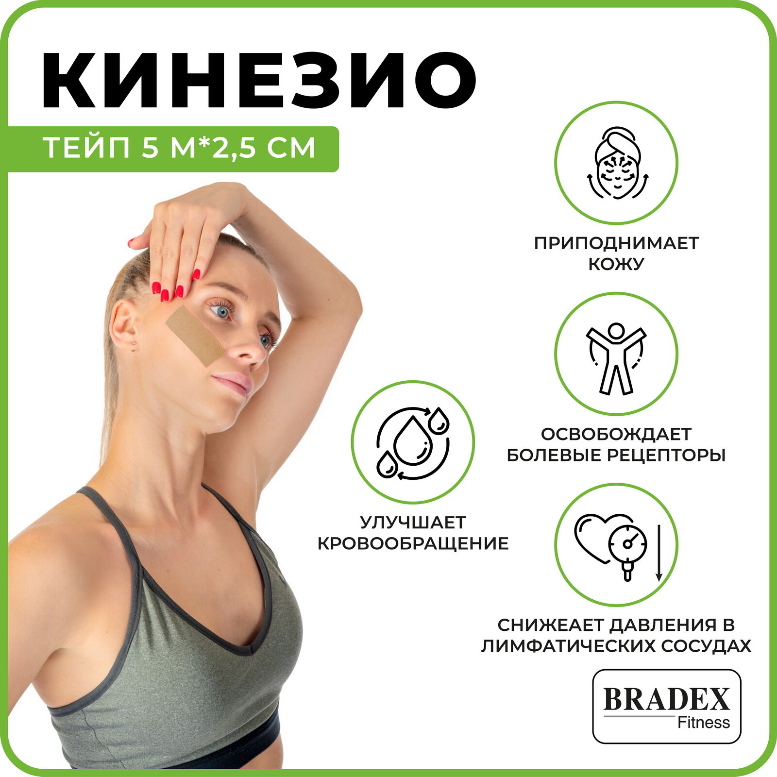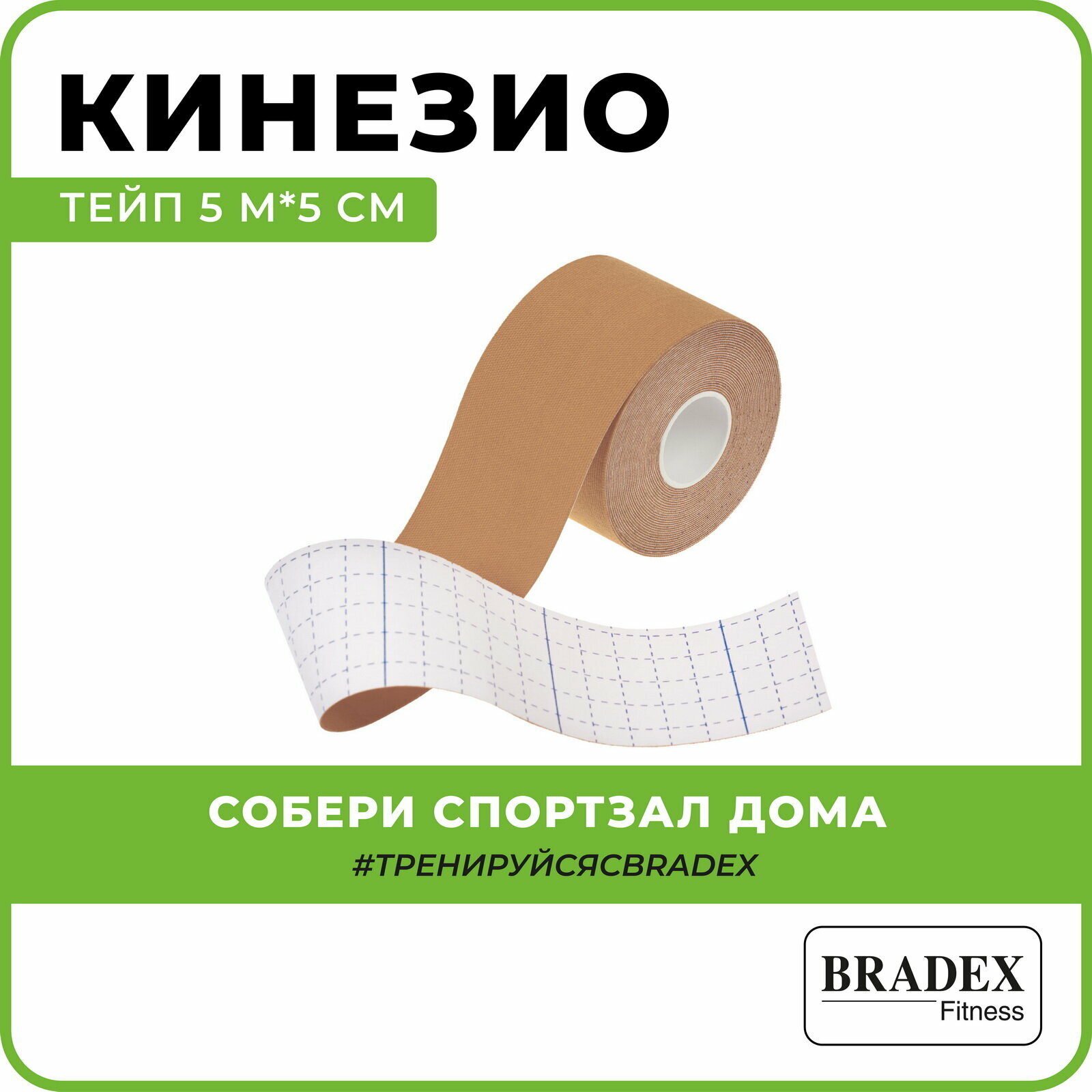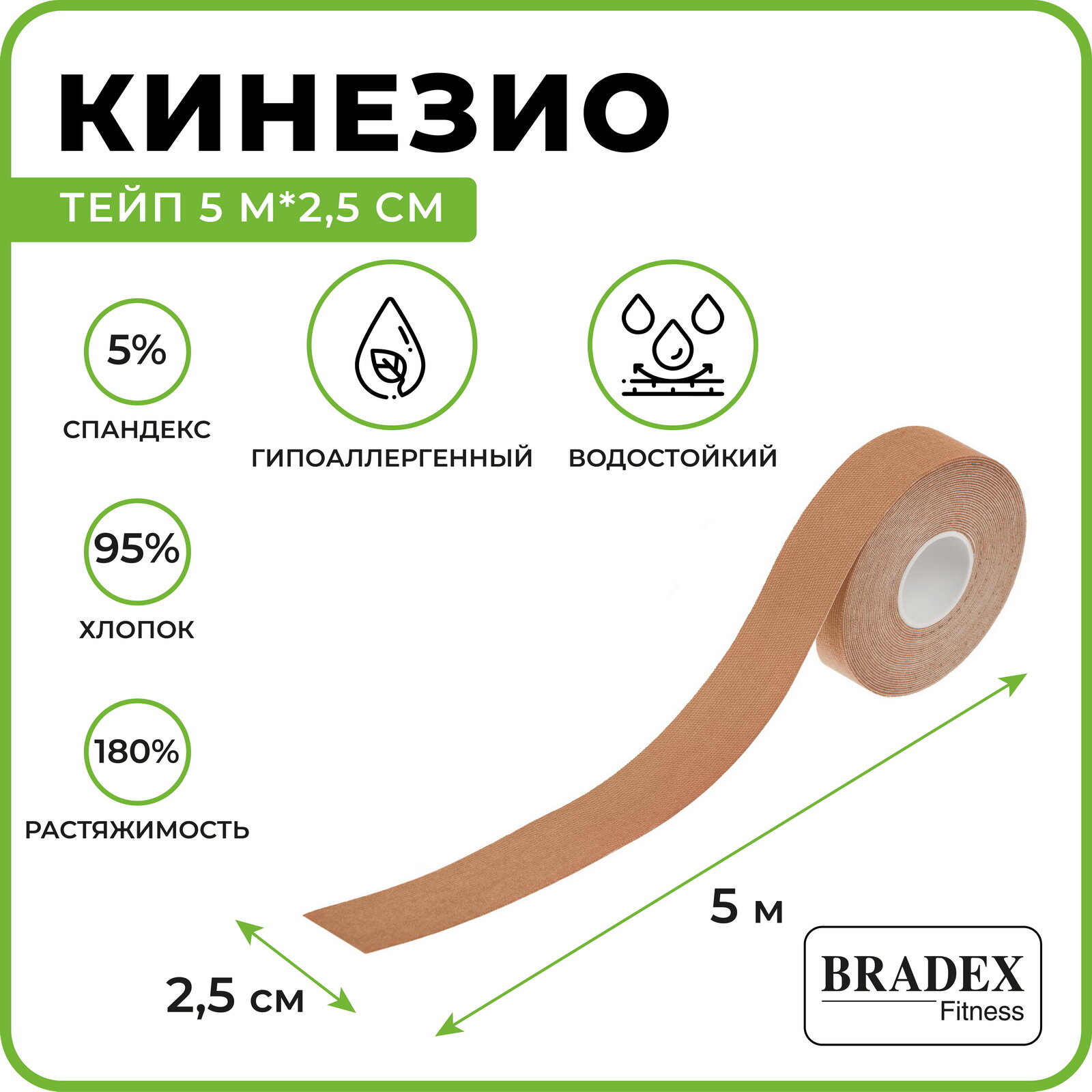 Тейп кинезио Bradex для спорта, хлопок 95%, спандекс 5%, 5м х 2.5см, бежевый интересное: