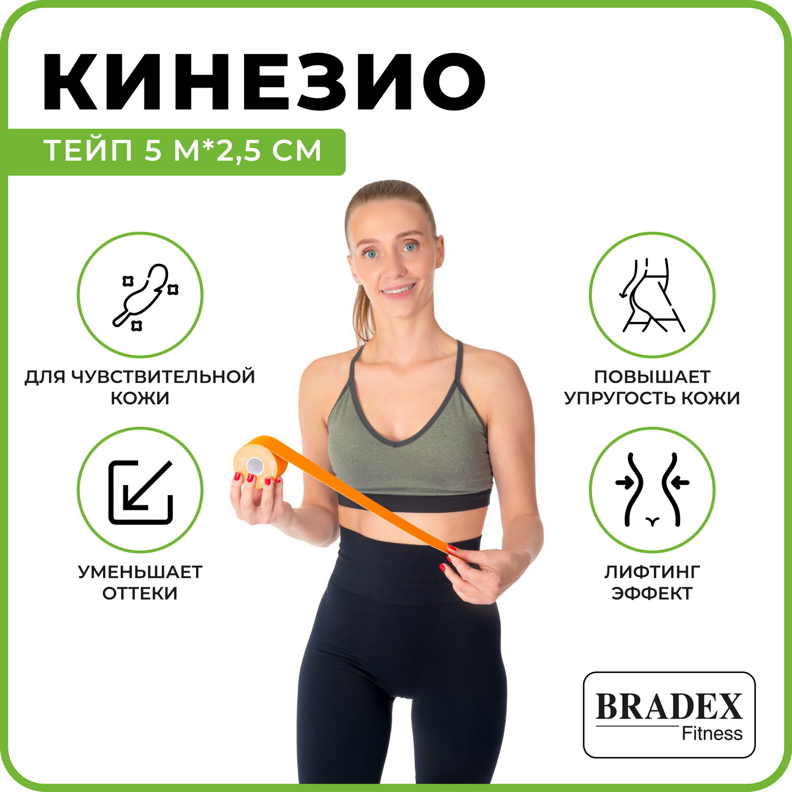 Тейп кинезио Bradex для спорта, хлопок 95%, спандекс 5%, 5м х 2.5см, оранжевый интересное: