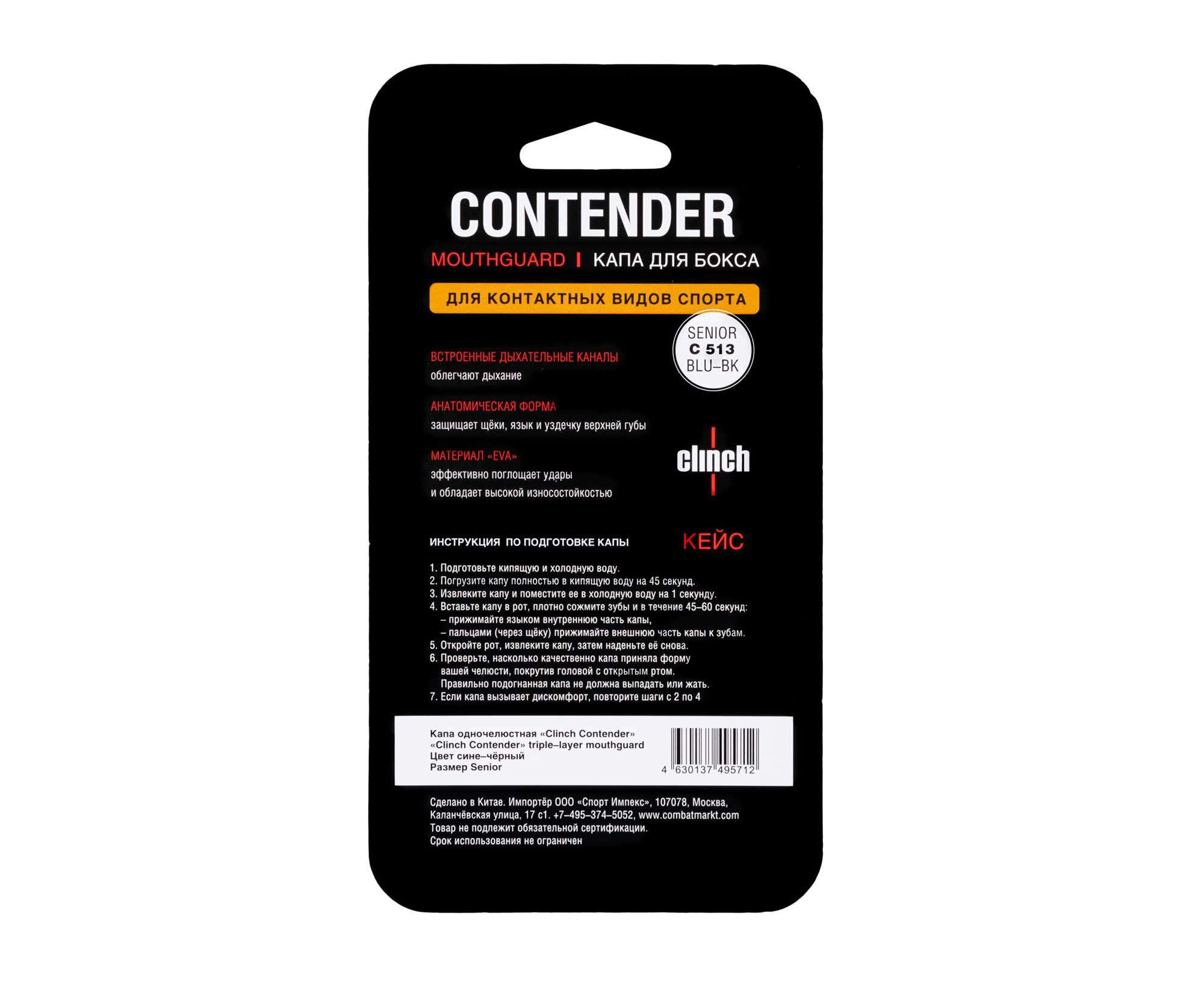 Капа одночелюстная Clinch Contender Triple Layer Mouthguard сине-черная (размер Senior) интересное: