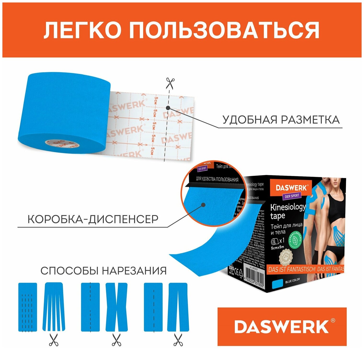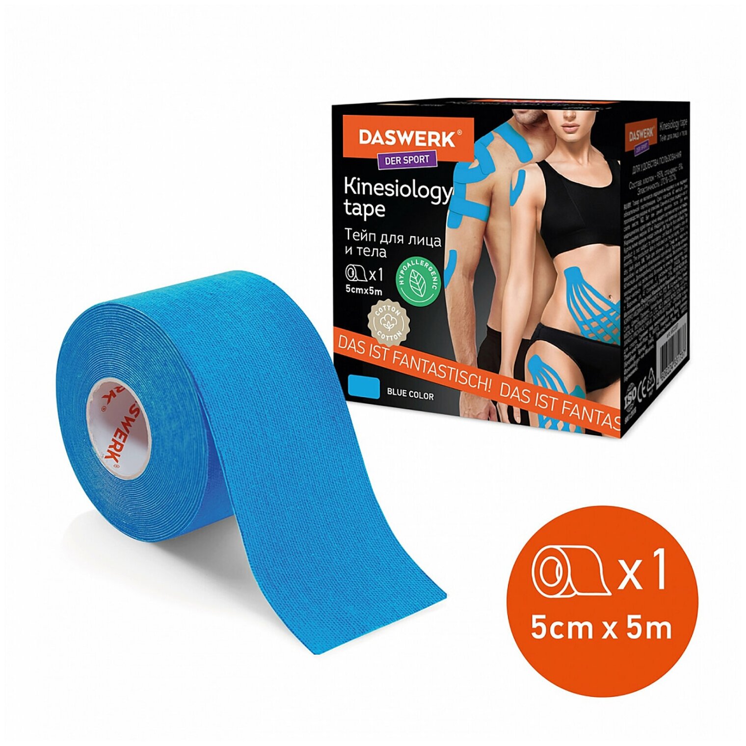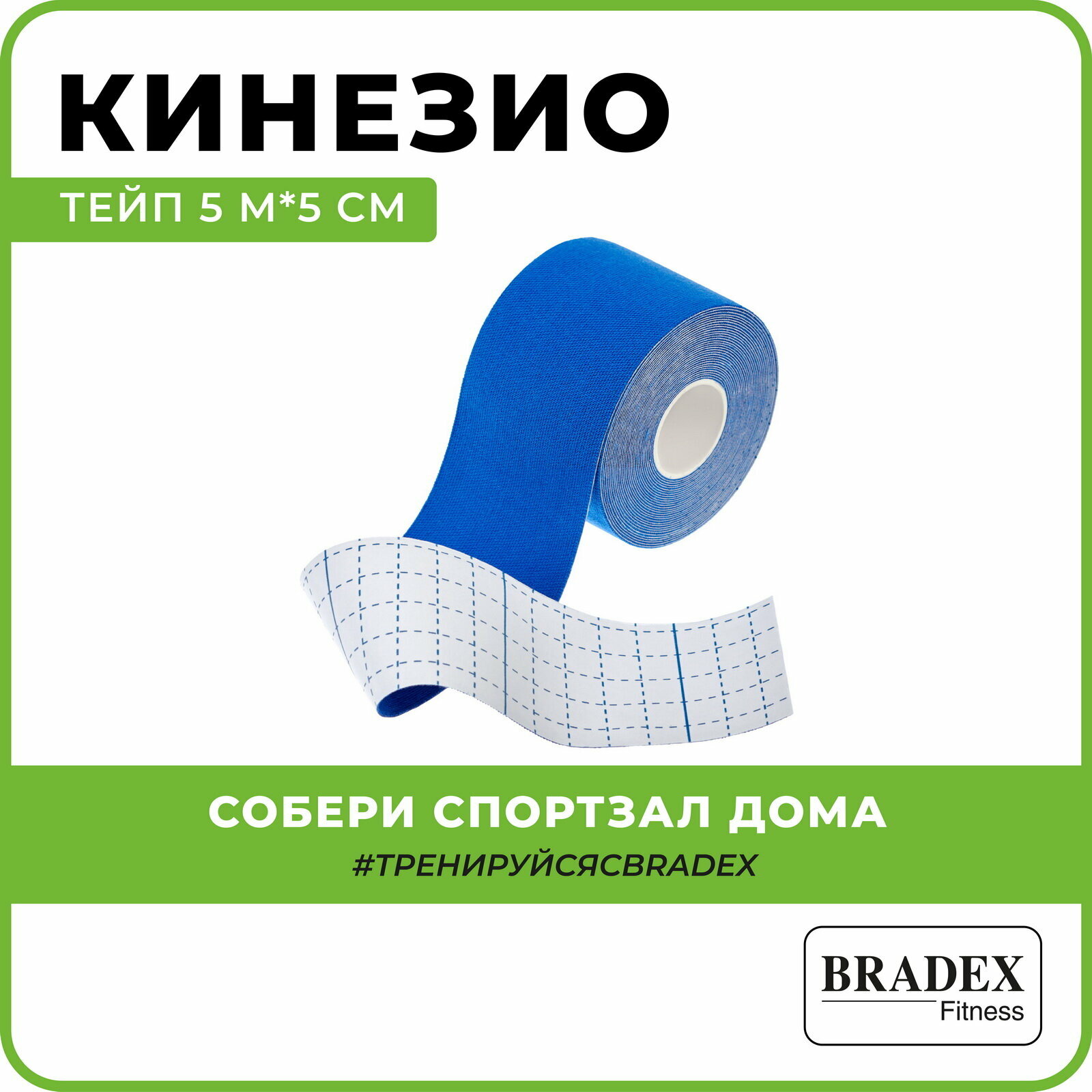 Тейп кинезио Bradex для спорта, хлопок 95%, спандекс 5%, 5 м х 5 см, синяя интересное: