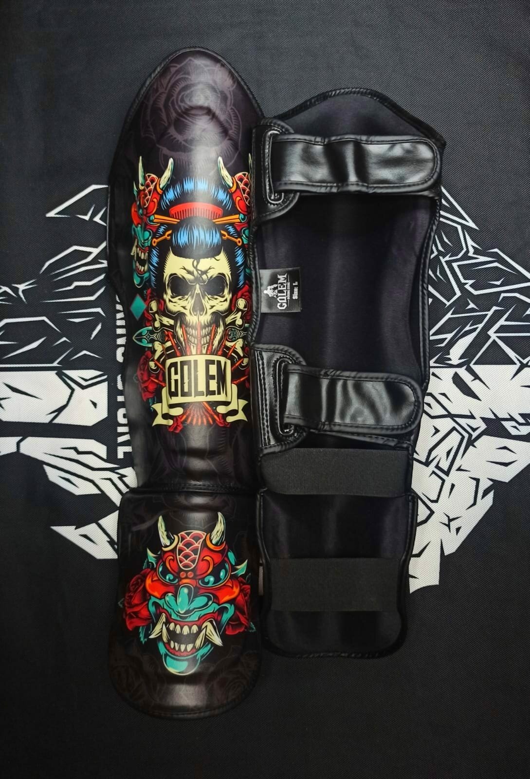 Защита голеностопа, голени для бокса и ММА, для мужчин, женщин, черный, змея и череп, XL