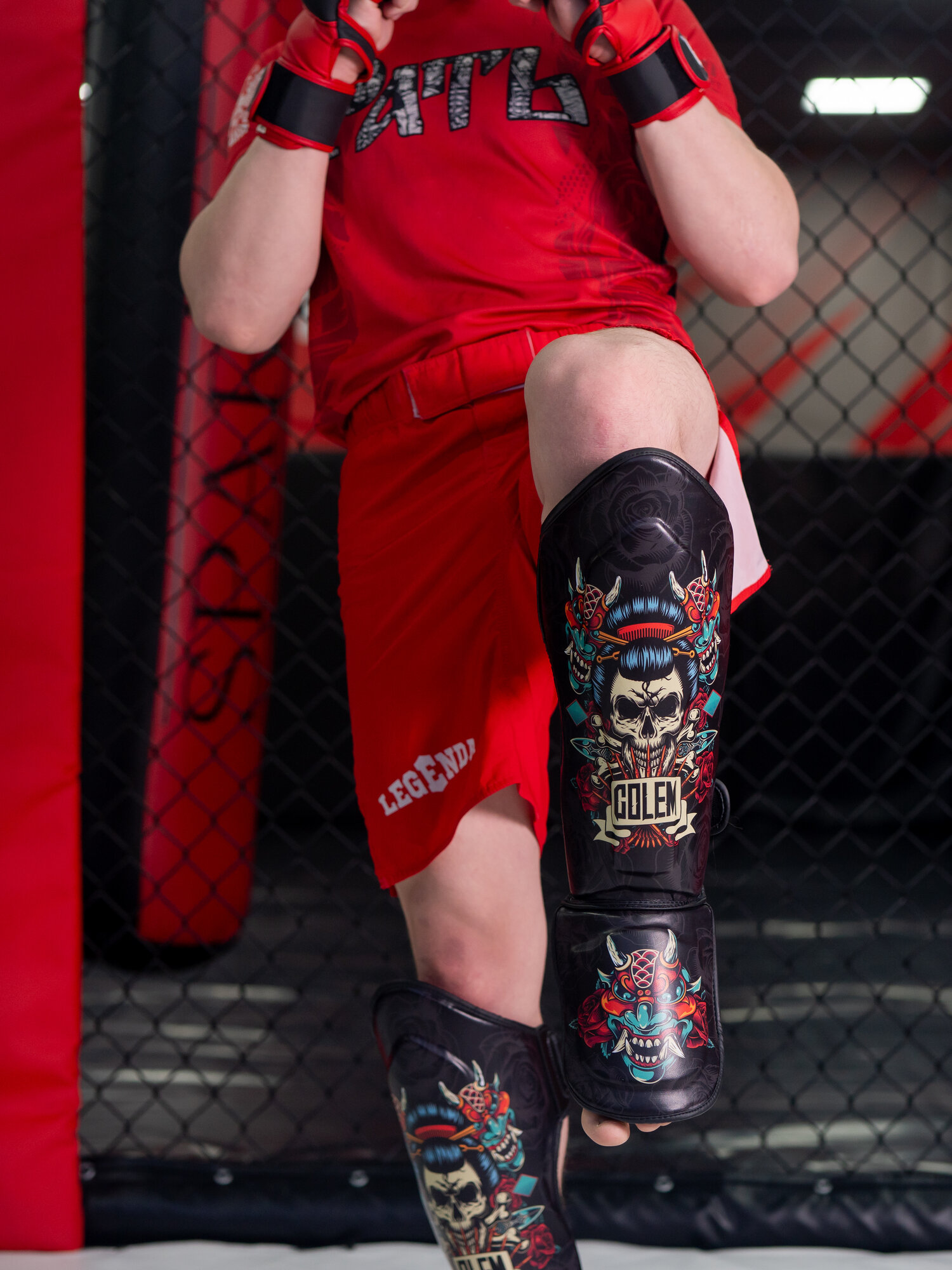 Защита голеностопа, голени для бокса и ММА, для мужчин, женщин, красный бык L