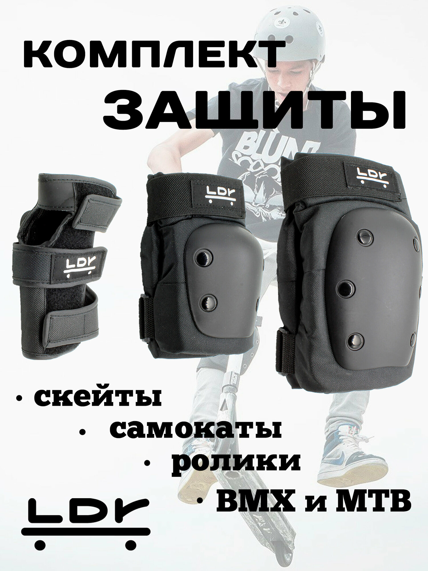 Комплект защиты Safety LDR Black S для скейтборда / самоката / роликовых коньков / BMX интересное: