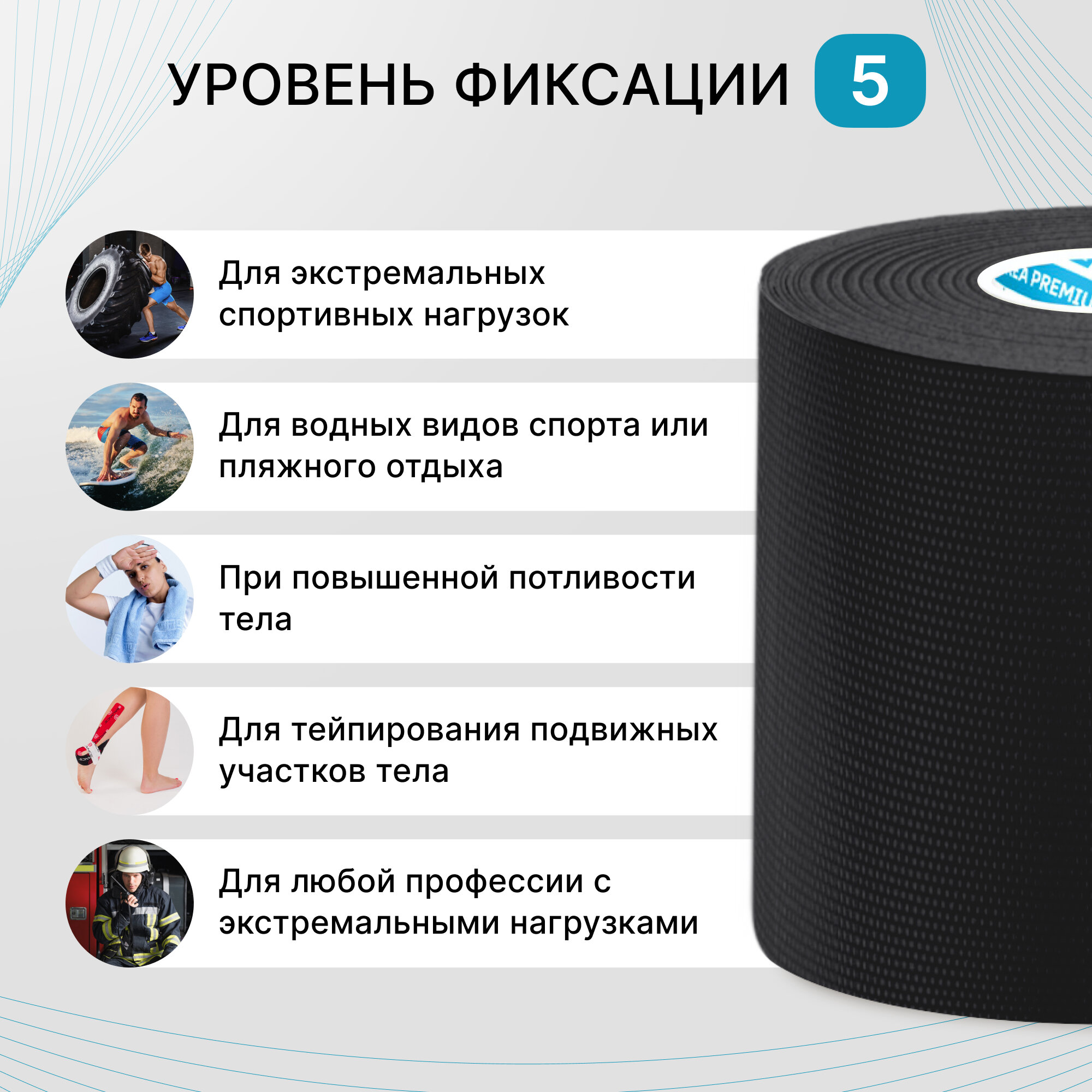 Купить BBalance MAX, кинезио тейп для тела с усиленной фиксацией. Размер 5см*5м, цвет чёрный