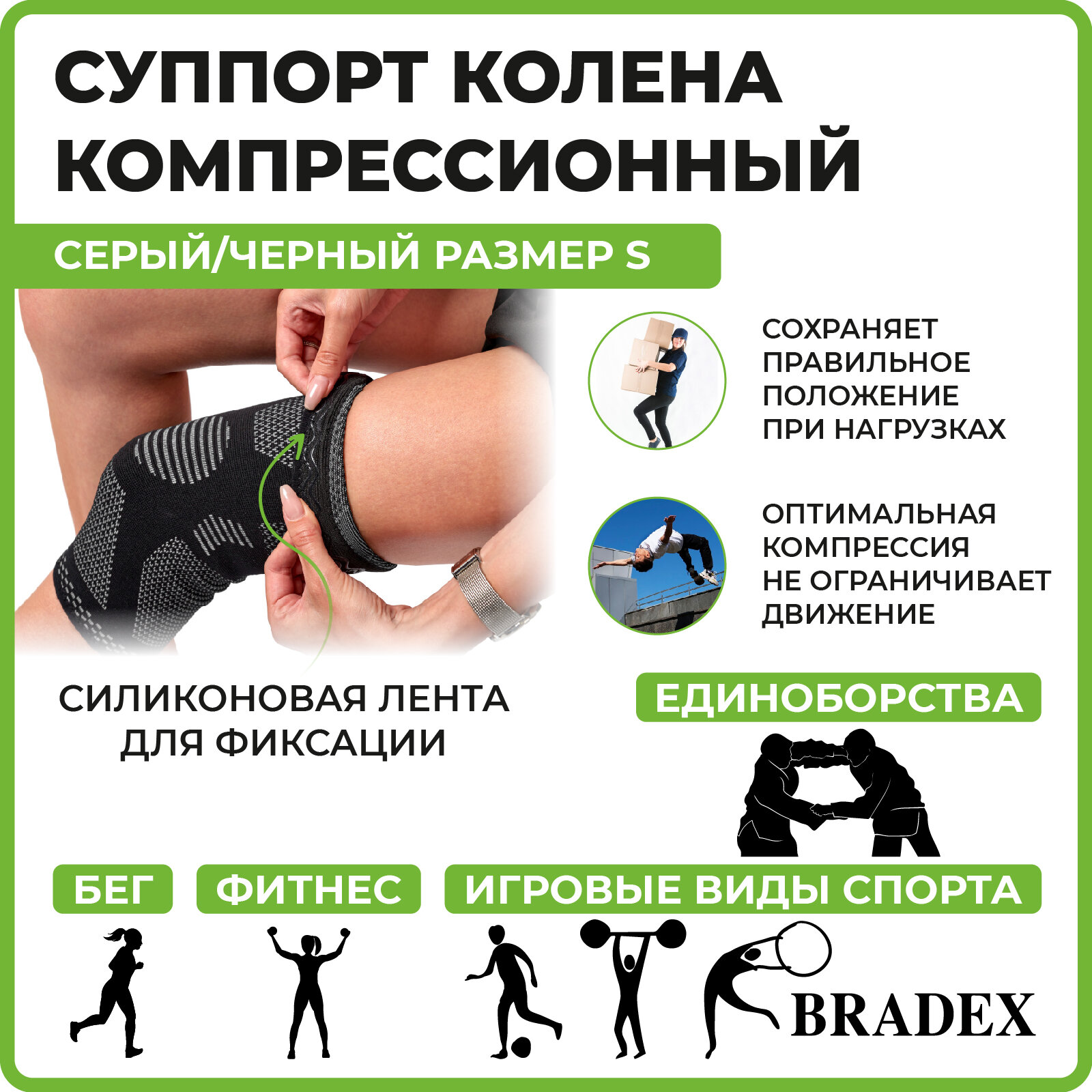 Суппорт колена, Bradex SF 0662, размер S, серый интересное: