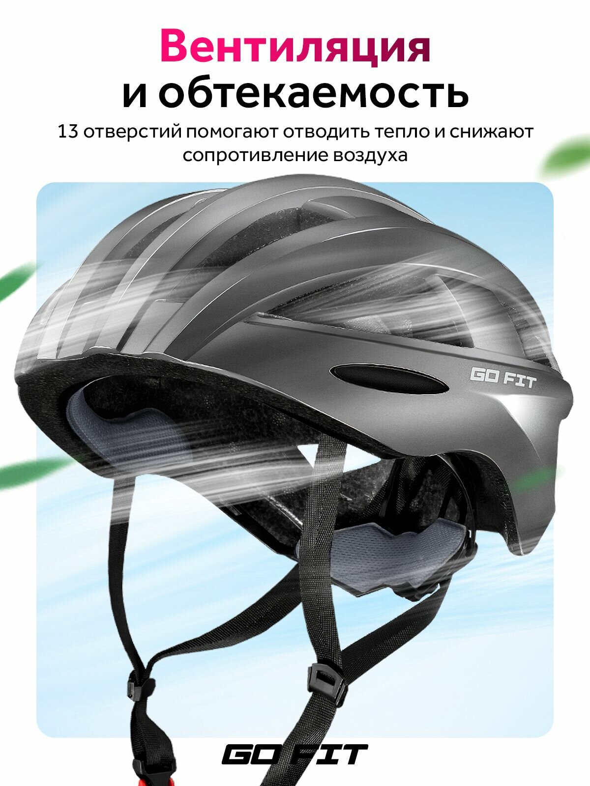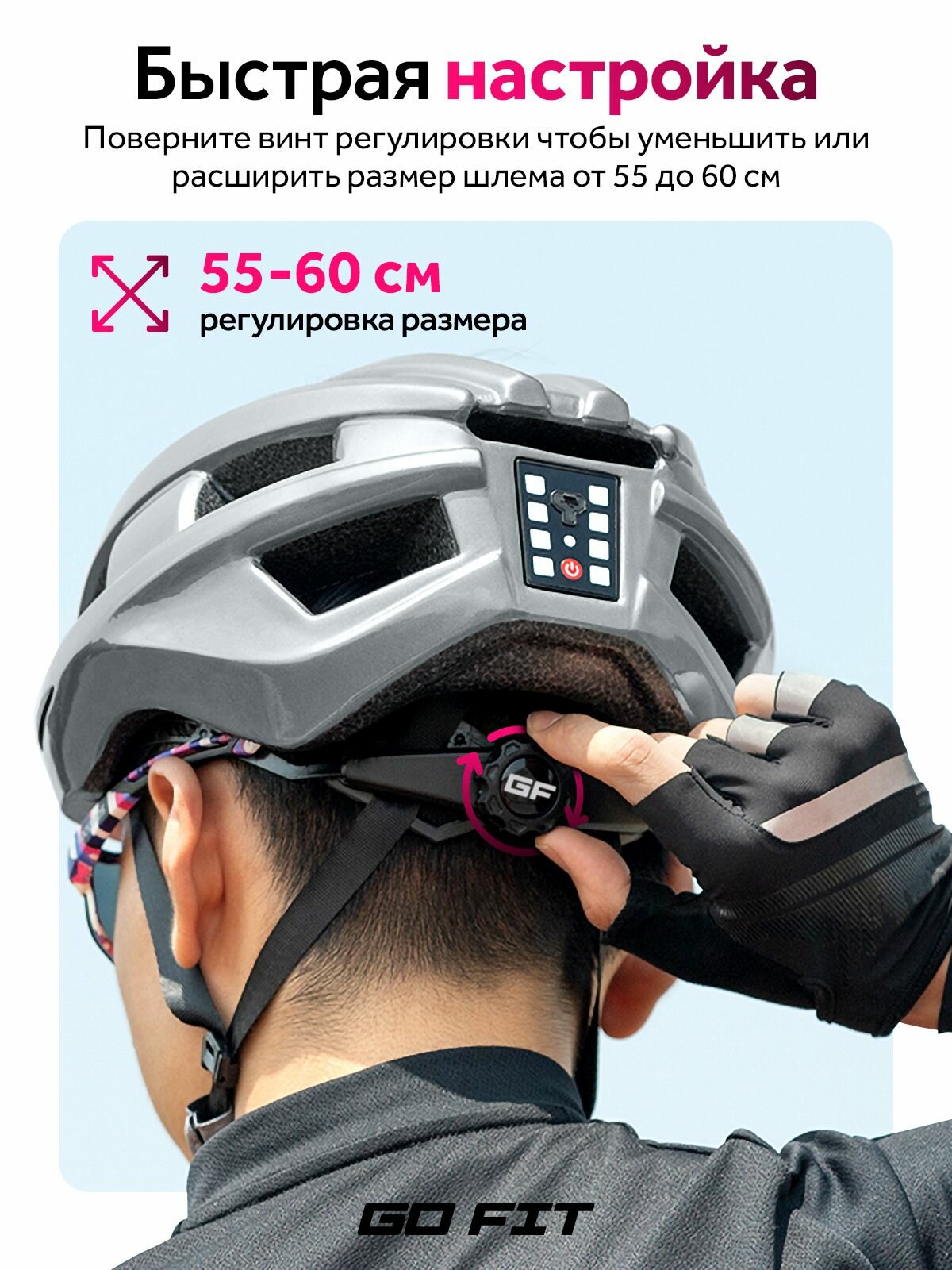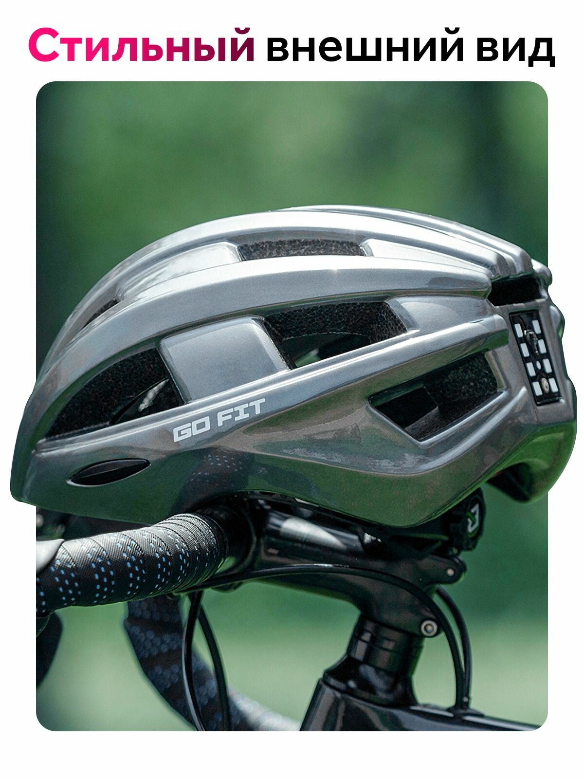 Шлем велосипедный GO FIT Active, встроенный задний фонарь, защитный спортивный, экипировка для велосипеда, серый интересное: