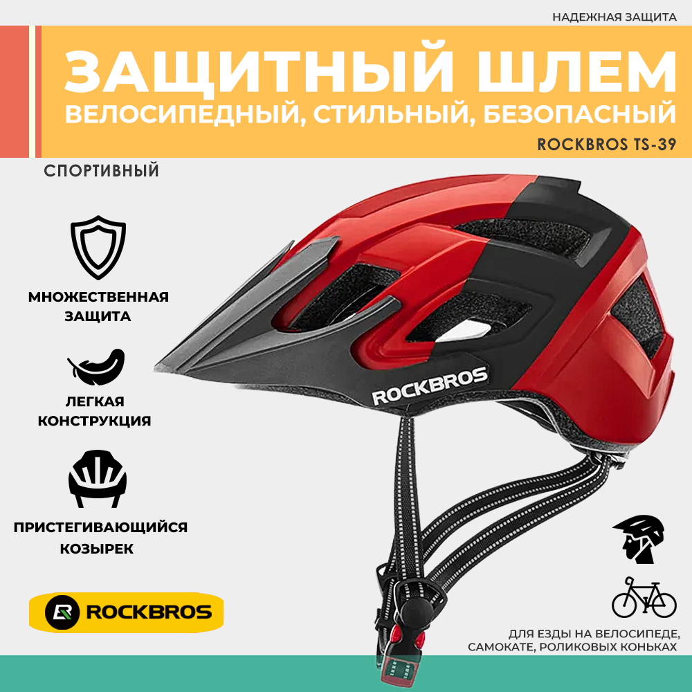 Шлем велосипедный Rockbros TS-39 ABS-пластик, черно-красный, унисекс интересное: