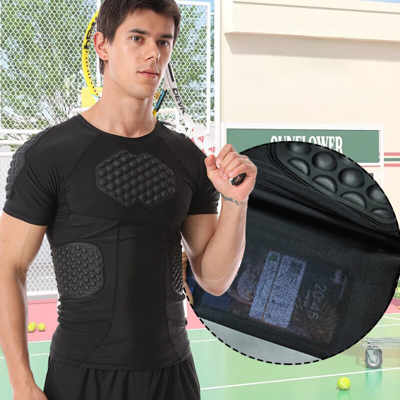 Футболка спортивная с защитой плеч и груди, полиэстер/спандекс, XL, черная