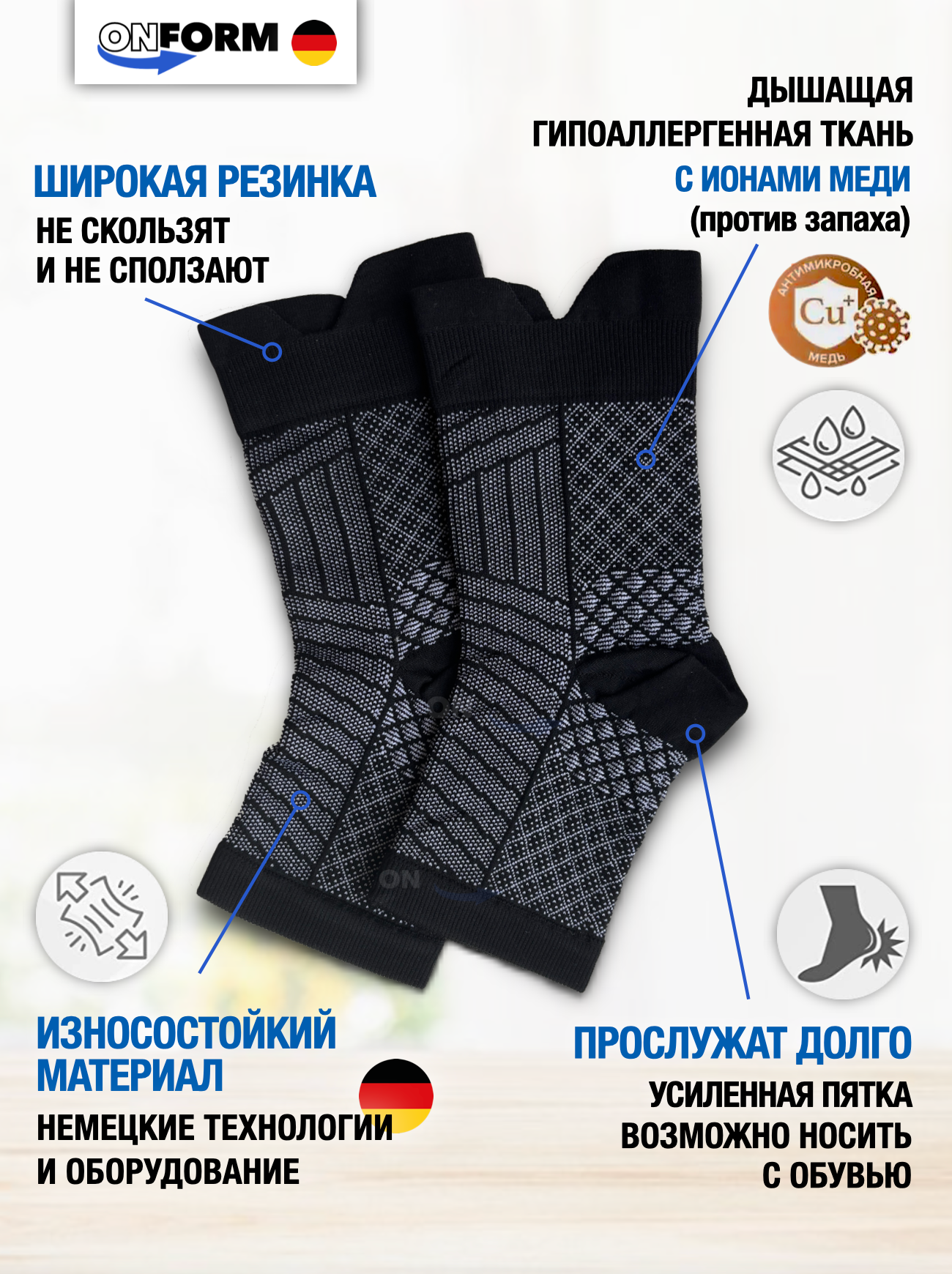 Бандаж на голеностоп, при болях и после травм, размер S/M, черный, 1 пара интересное: