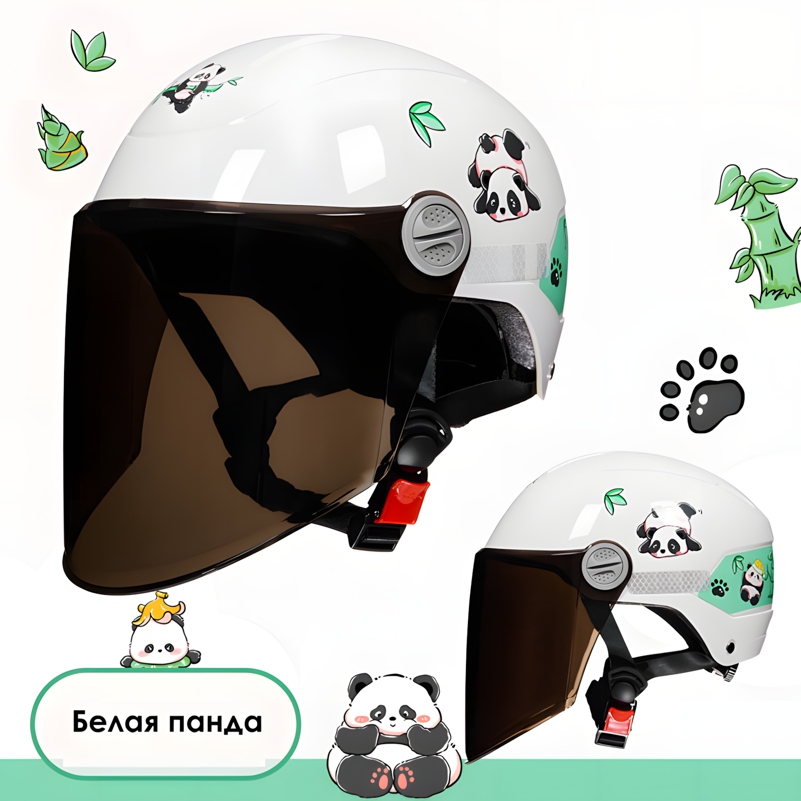Велосипедный шлем BYB для детей и подростков (3-15 лет) с коротким прозрачным визором, белая панда