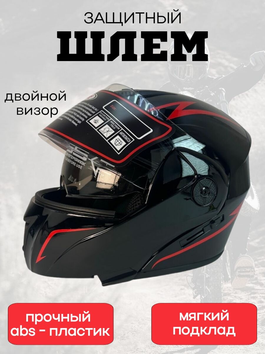 Шлем трансформер с очками и откидывающимся забралом, красная молния интересное: