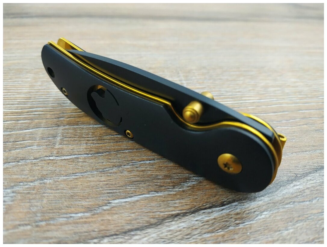 Нож складной Stinger, клинок из нержавеющей стали 70 мм, рукоять из стали и дерева чёрно-золотистого цвета (SL309)