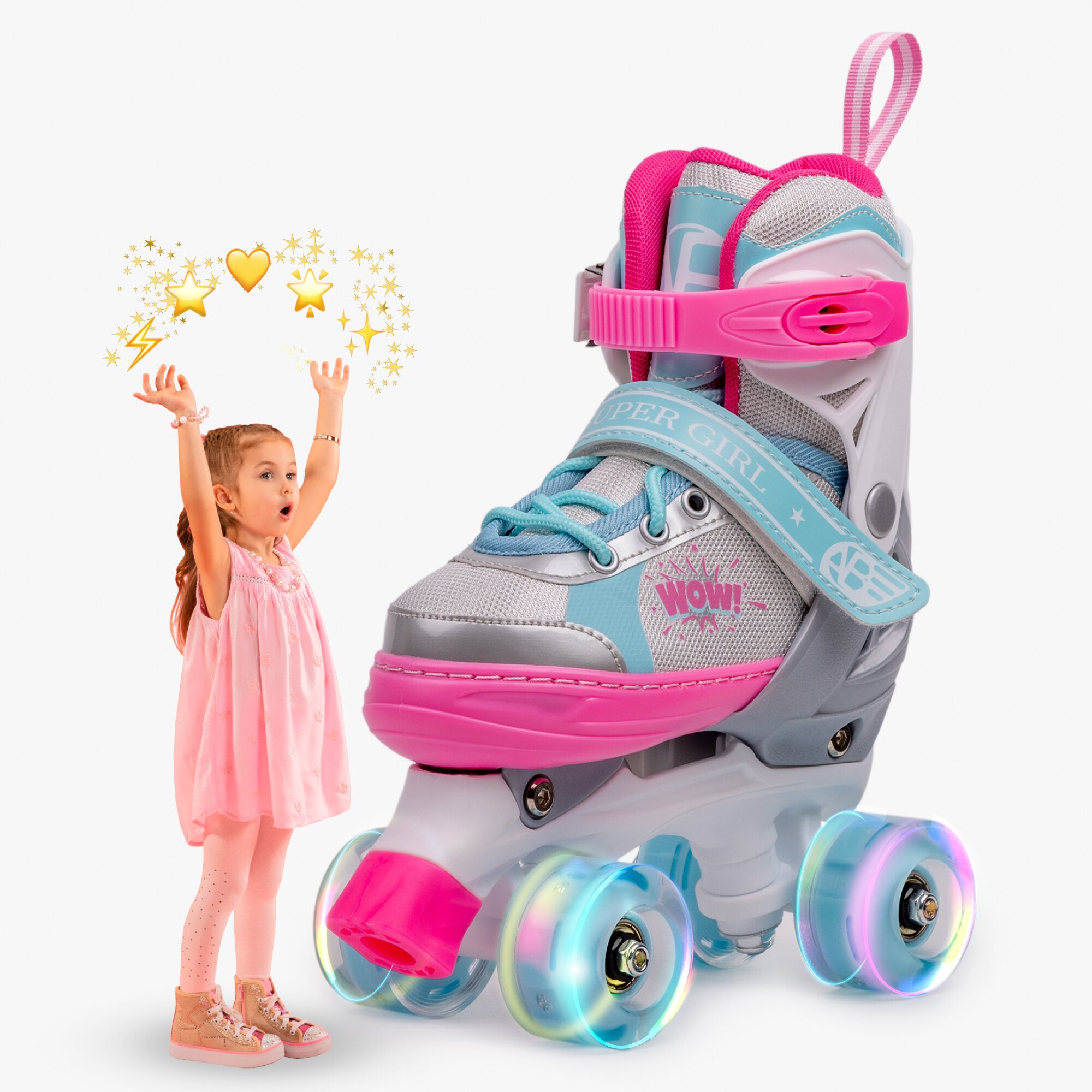 СохранитьРолики Amarobaby Wow раздвижные со светящимися колесами, розовые/голубые, размер 26-29 интересное: