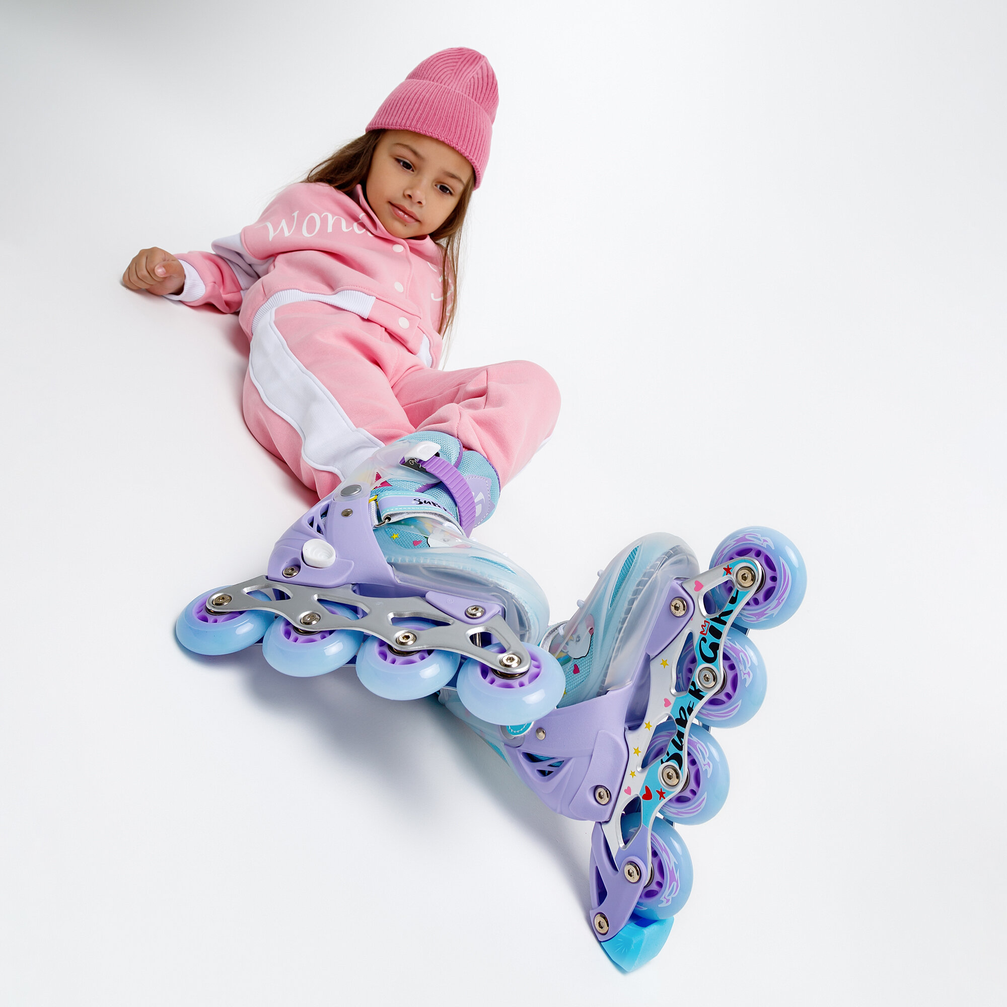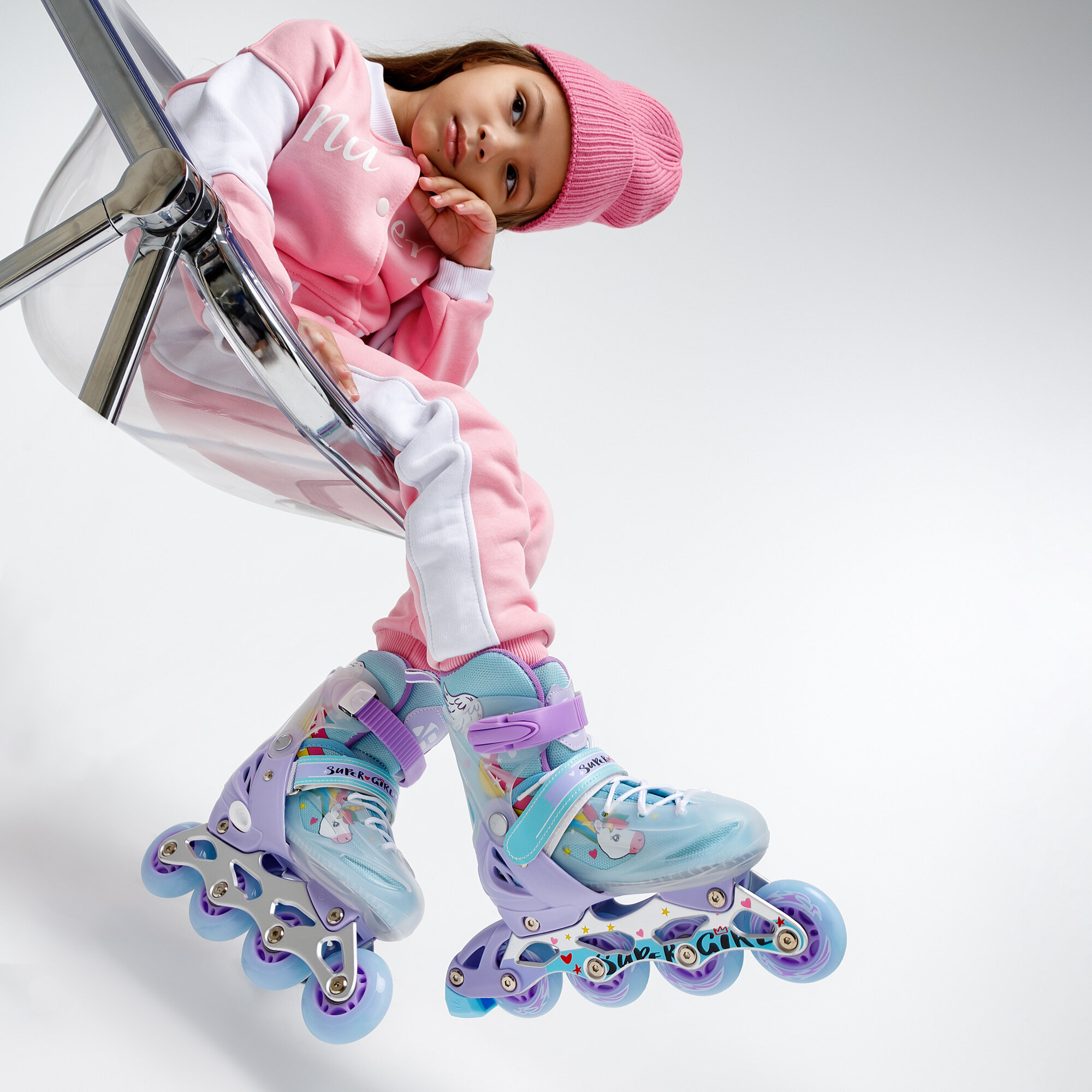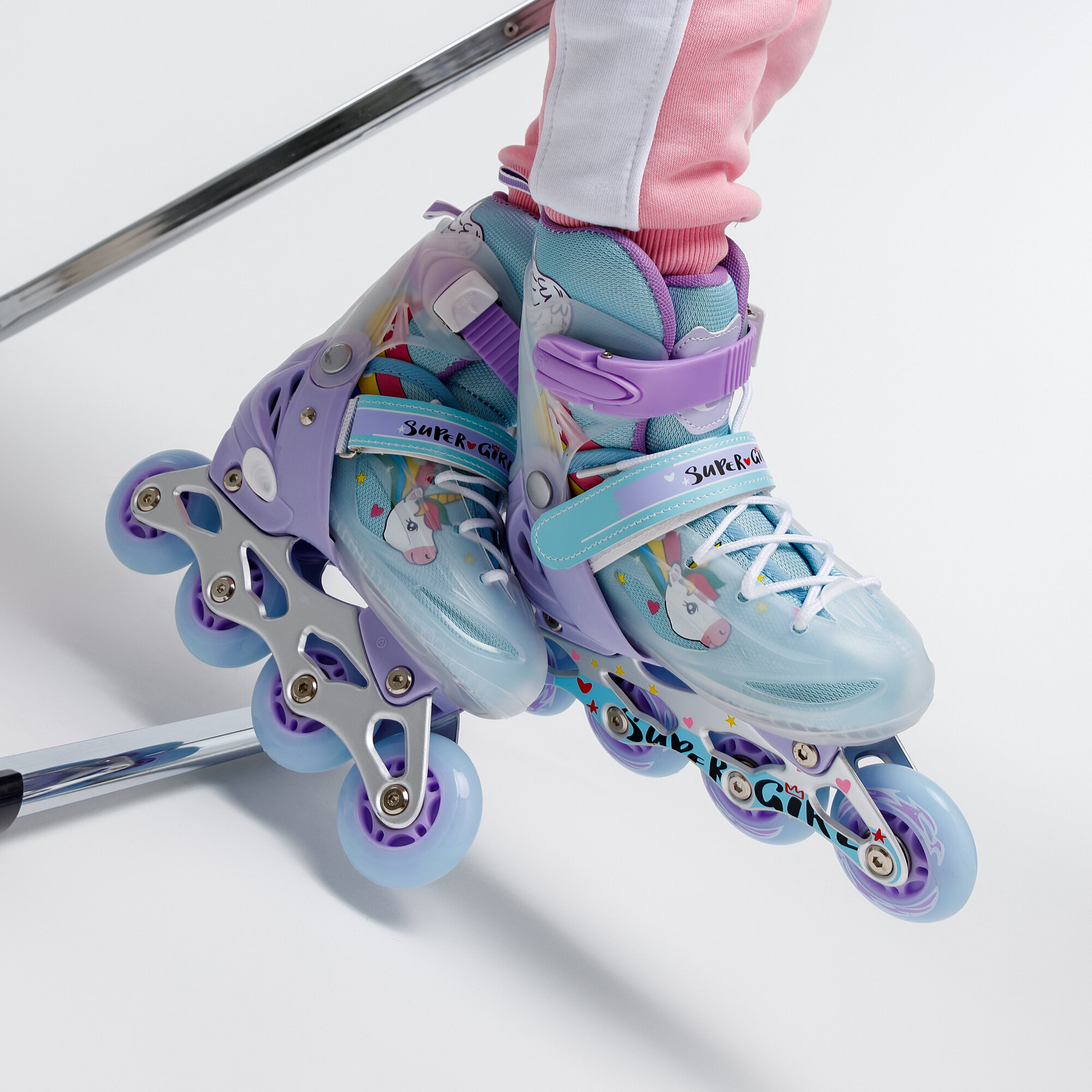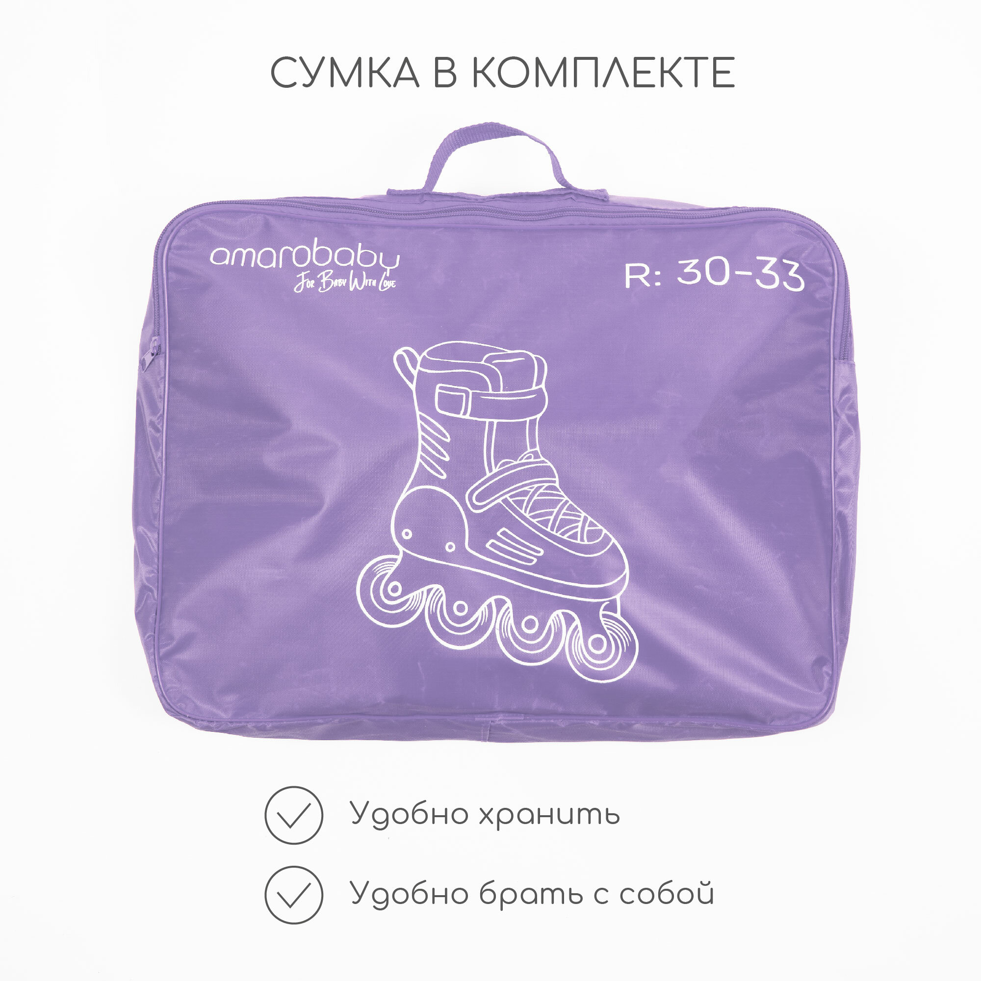 Ролики Amarobaby Unicorn раздвижные со светящимися колесами, розовые, размер 30-33