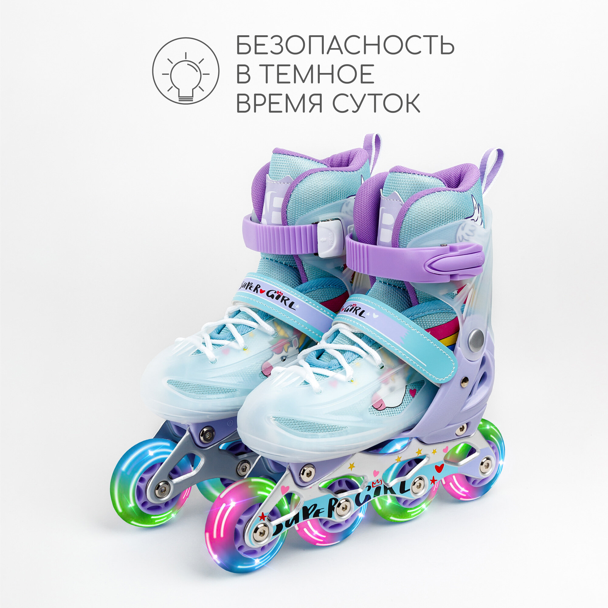 Ролики Amarobaby Rainbow раздвижные со светящимися колесами, мятный , размер 30-33 интересное: