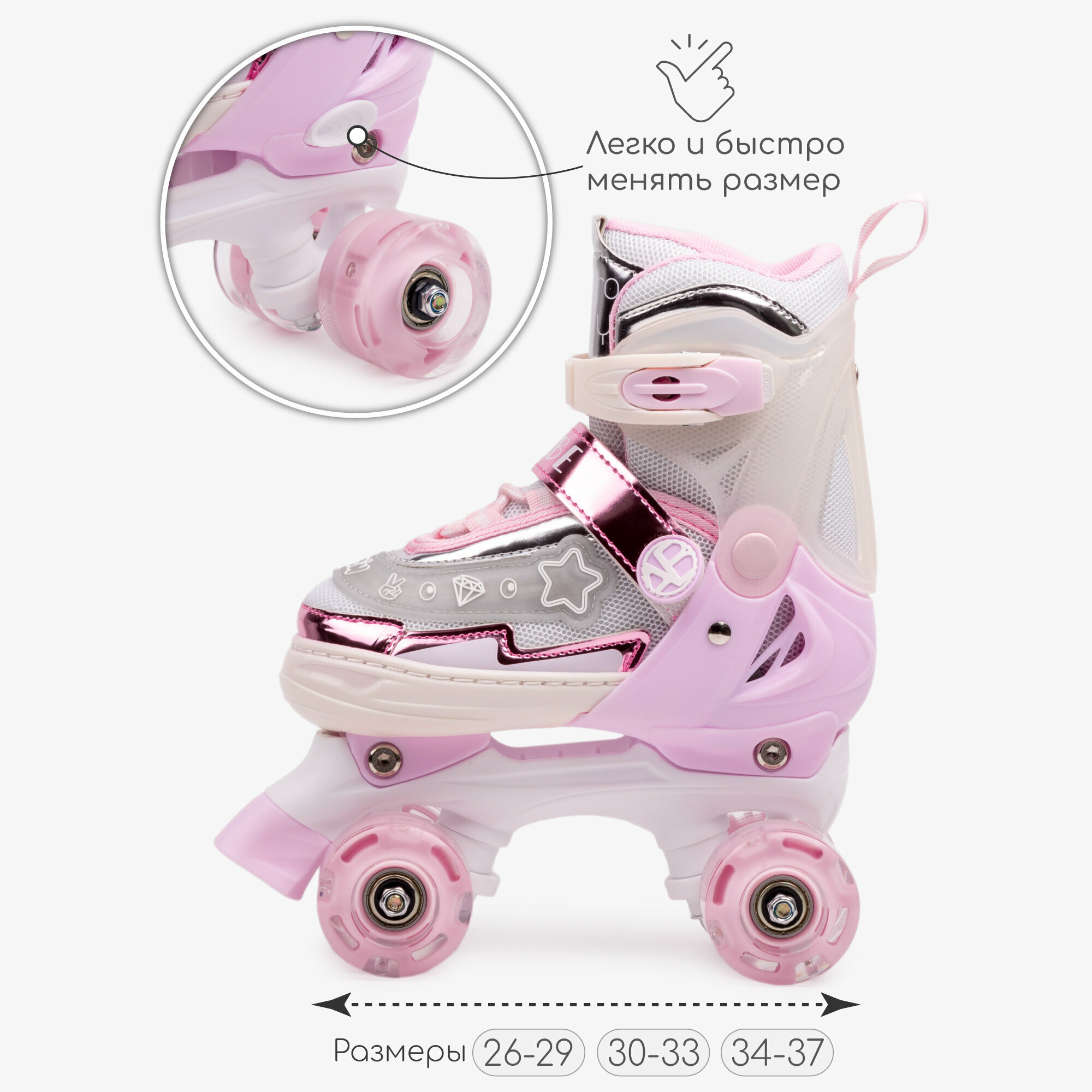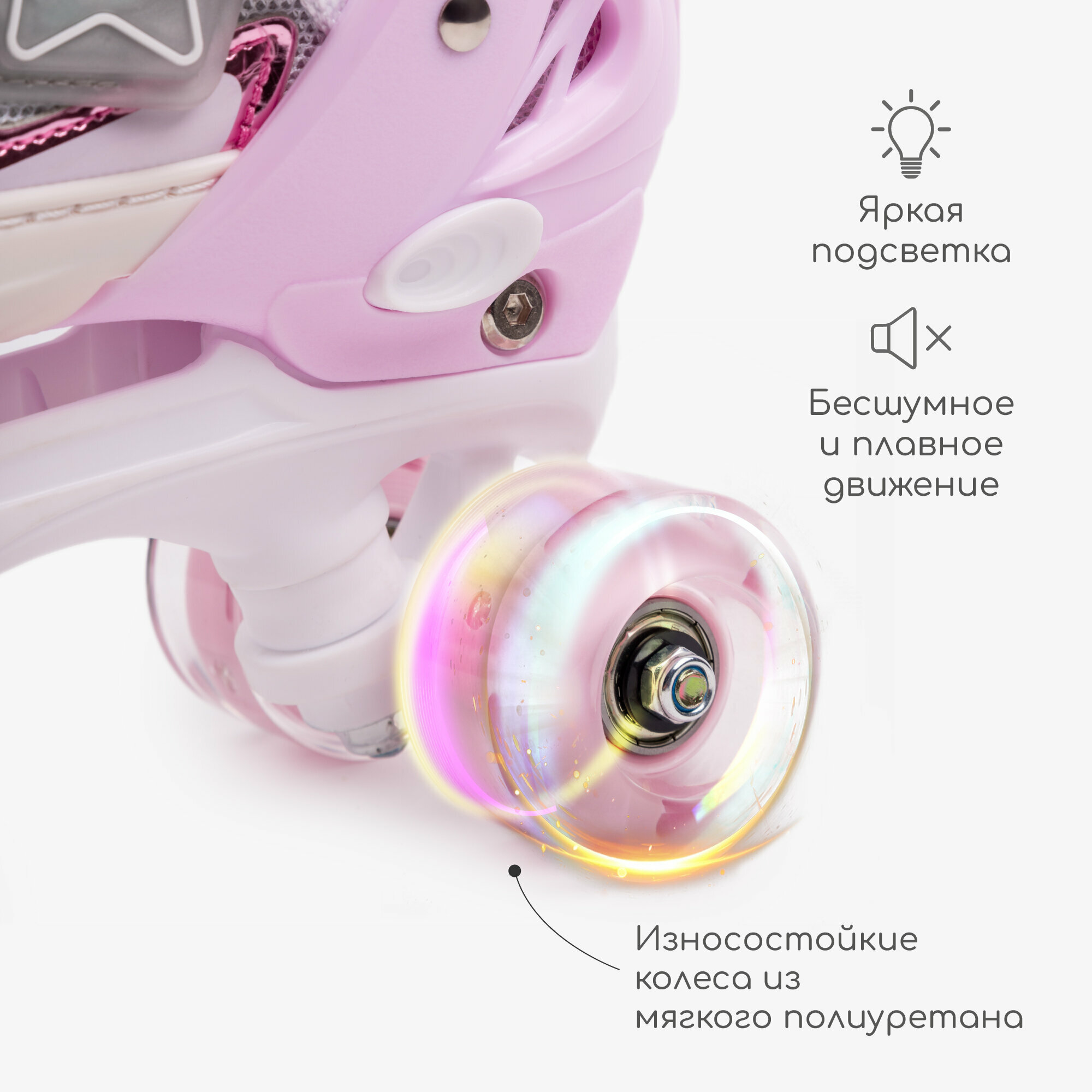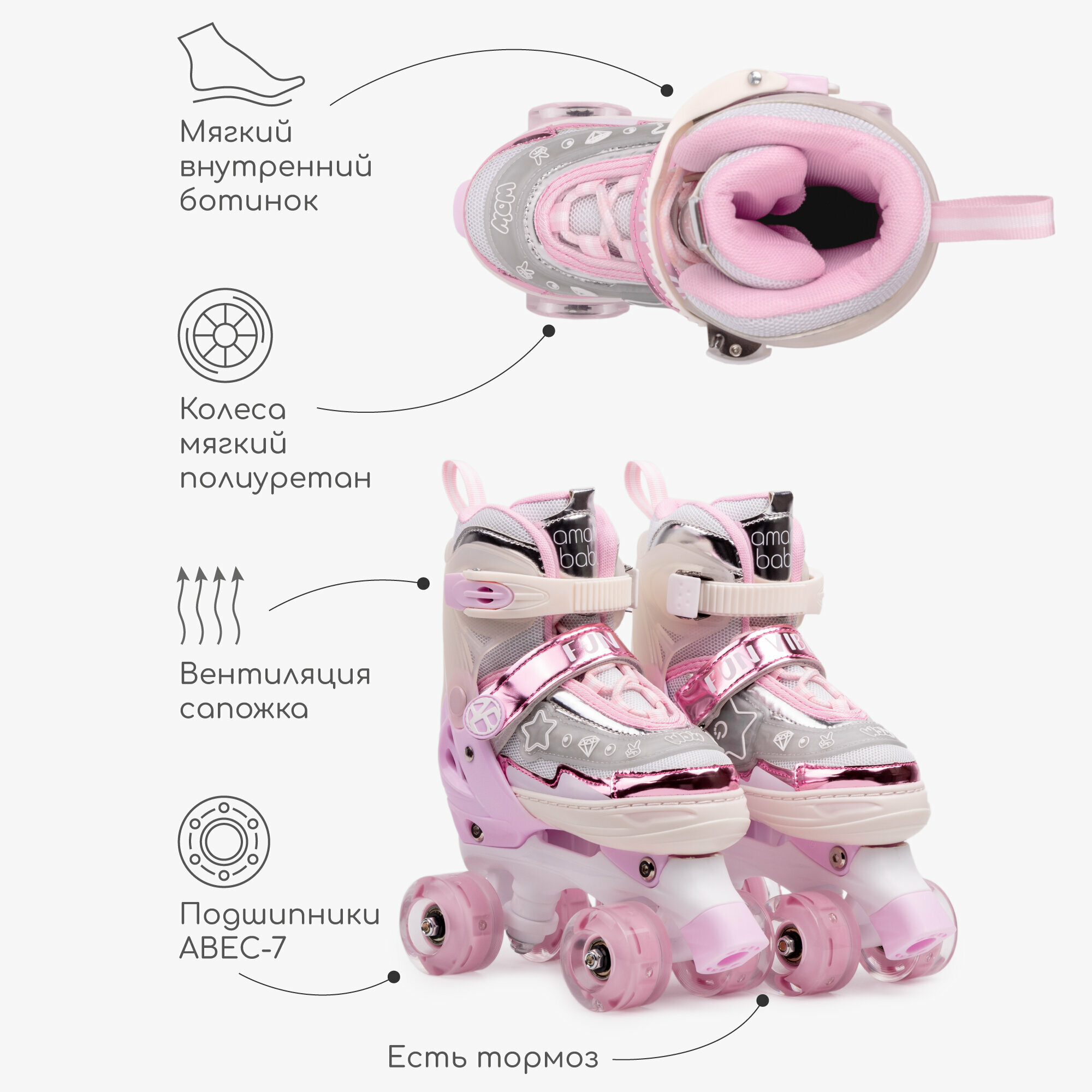Ролики Amarobaby Glory раздвижные со светящимися колесами, бежевый/розовый, размер 26-29