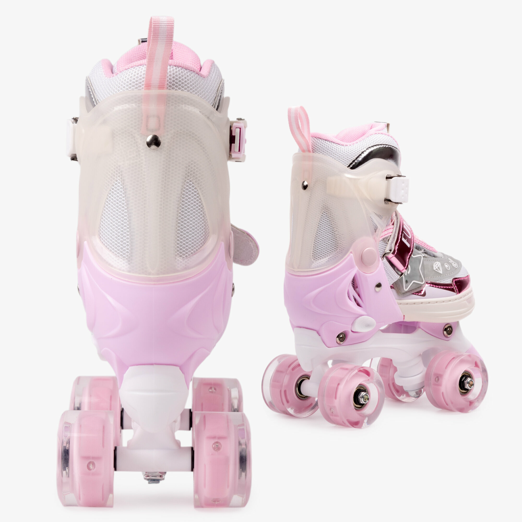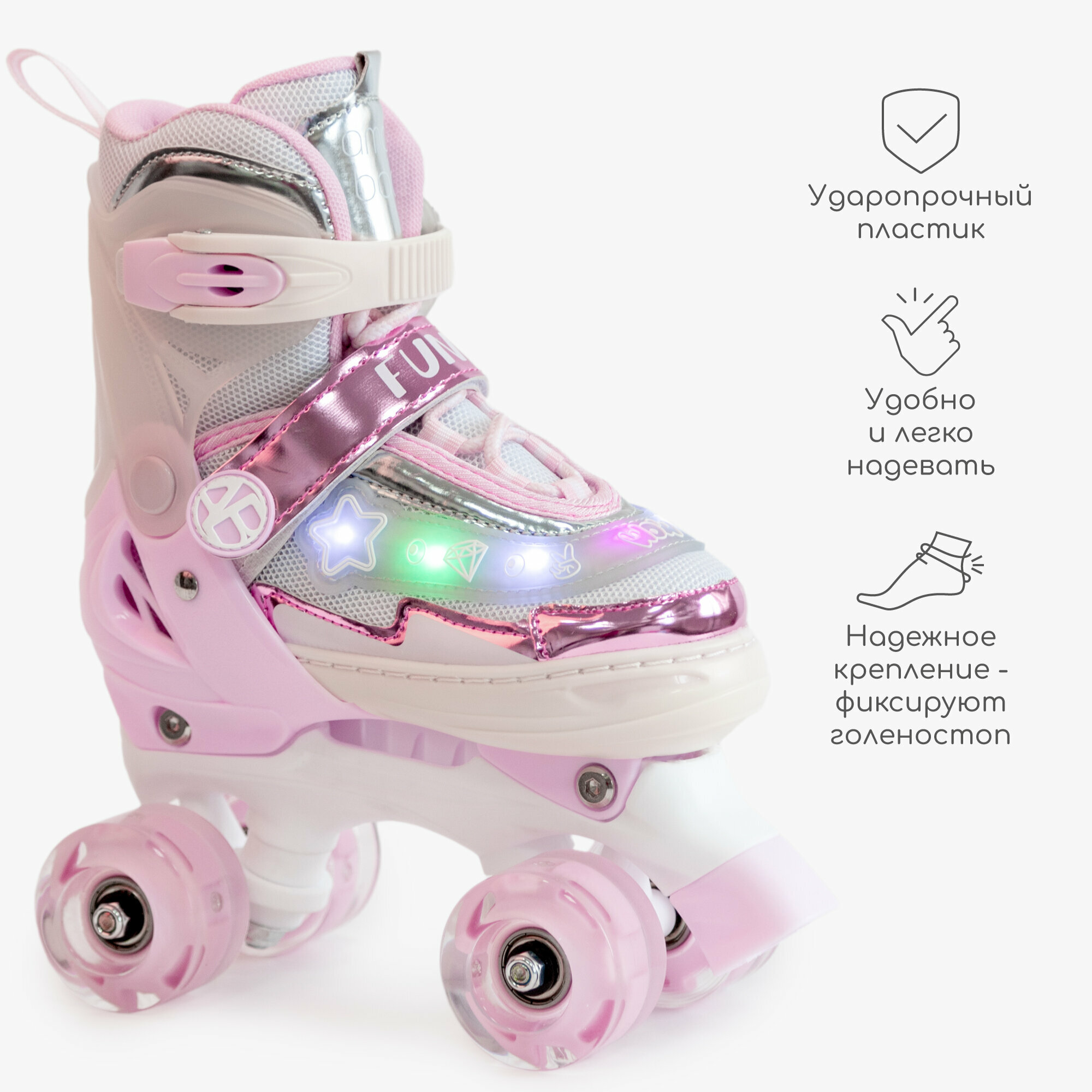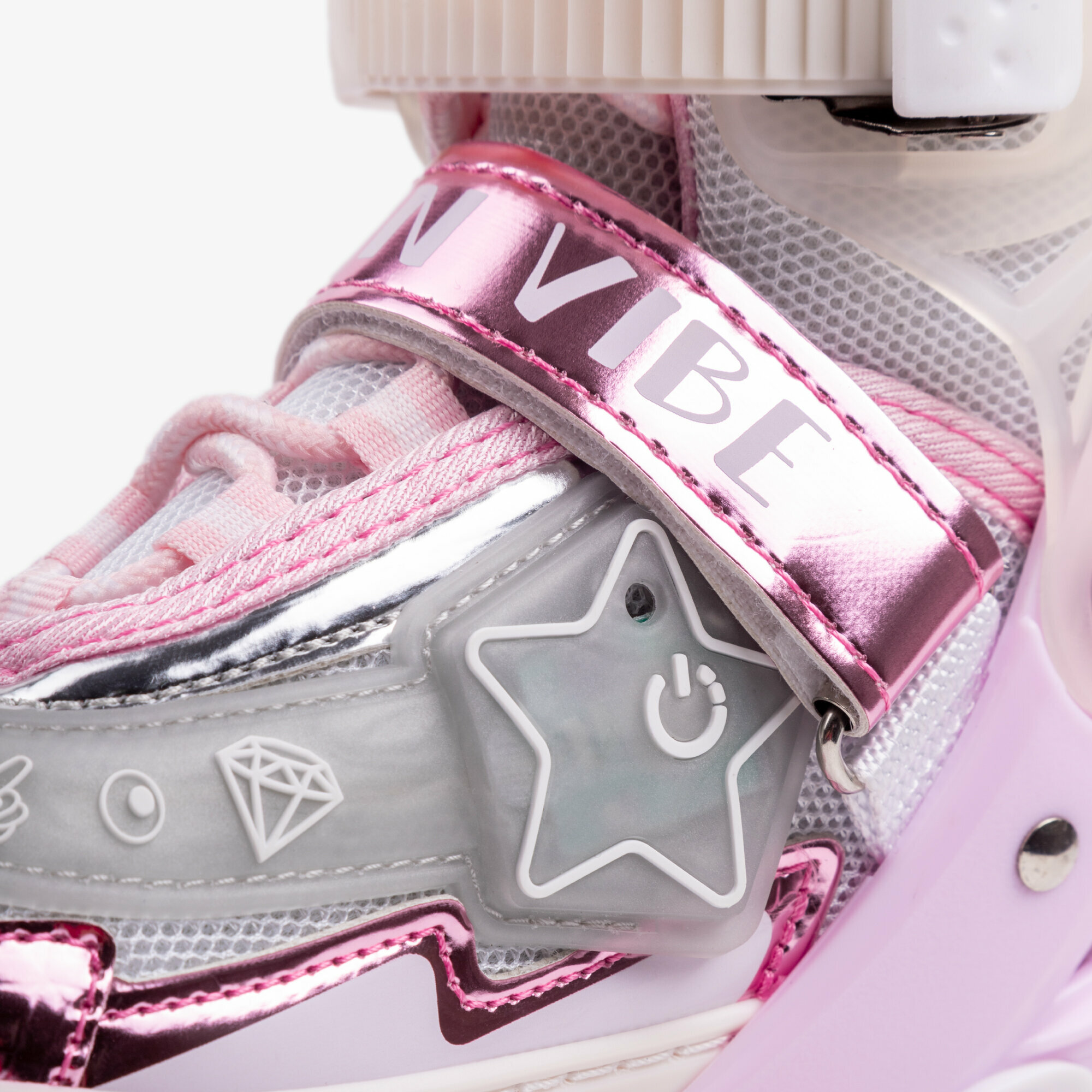 Ролики Amarobaby Glory раздвижные со светящимися колесами, бежевый/розовый, размер 26-29