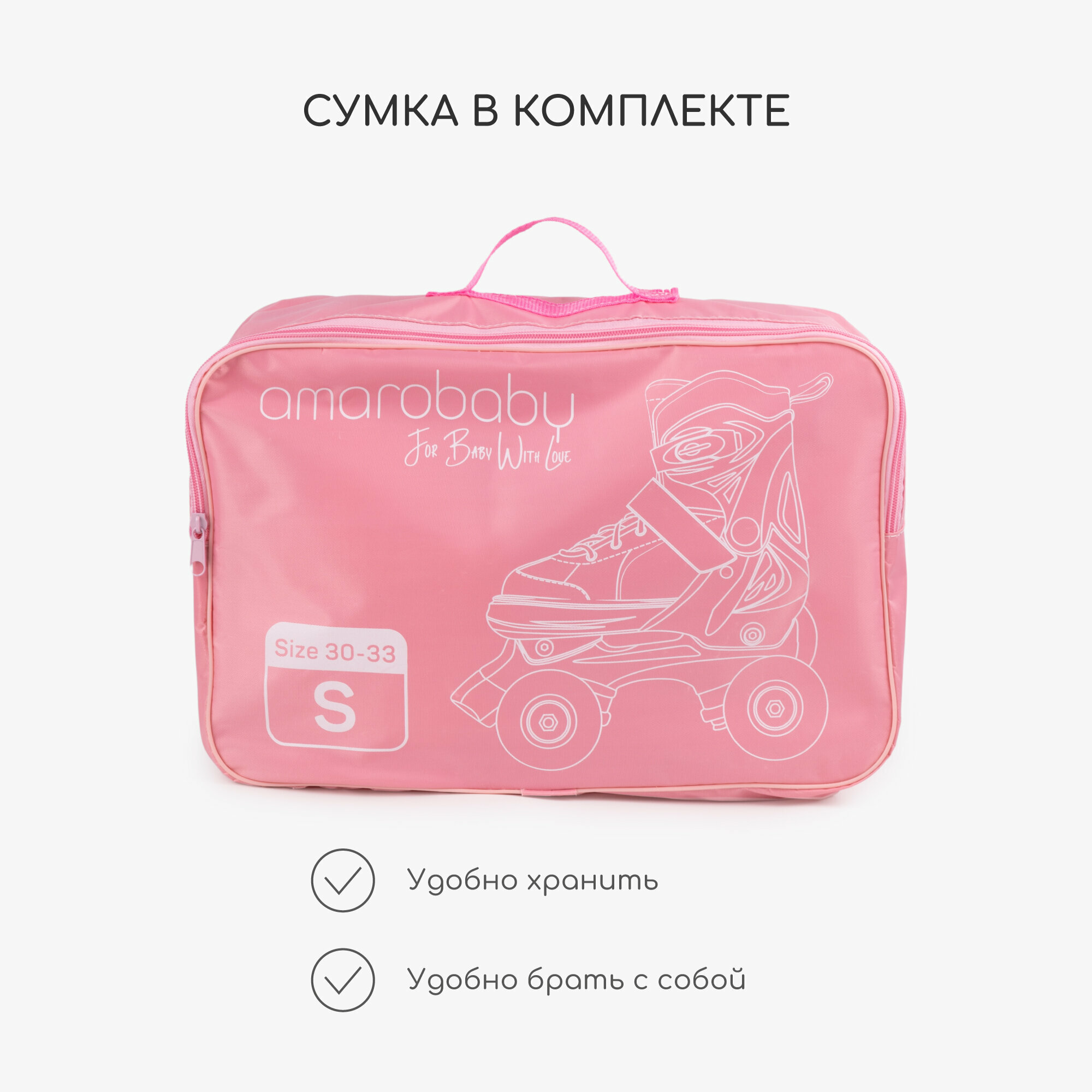 Купить Ролики Amarobaby Glory раздвижные со светящимися колесами, бежевый/розовый, размер 30-33