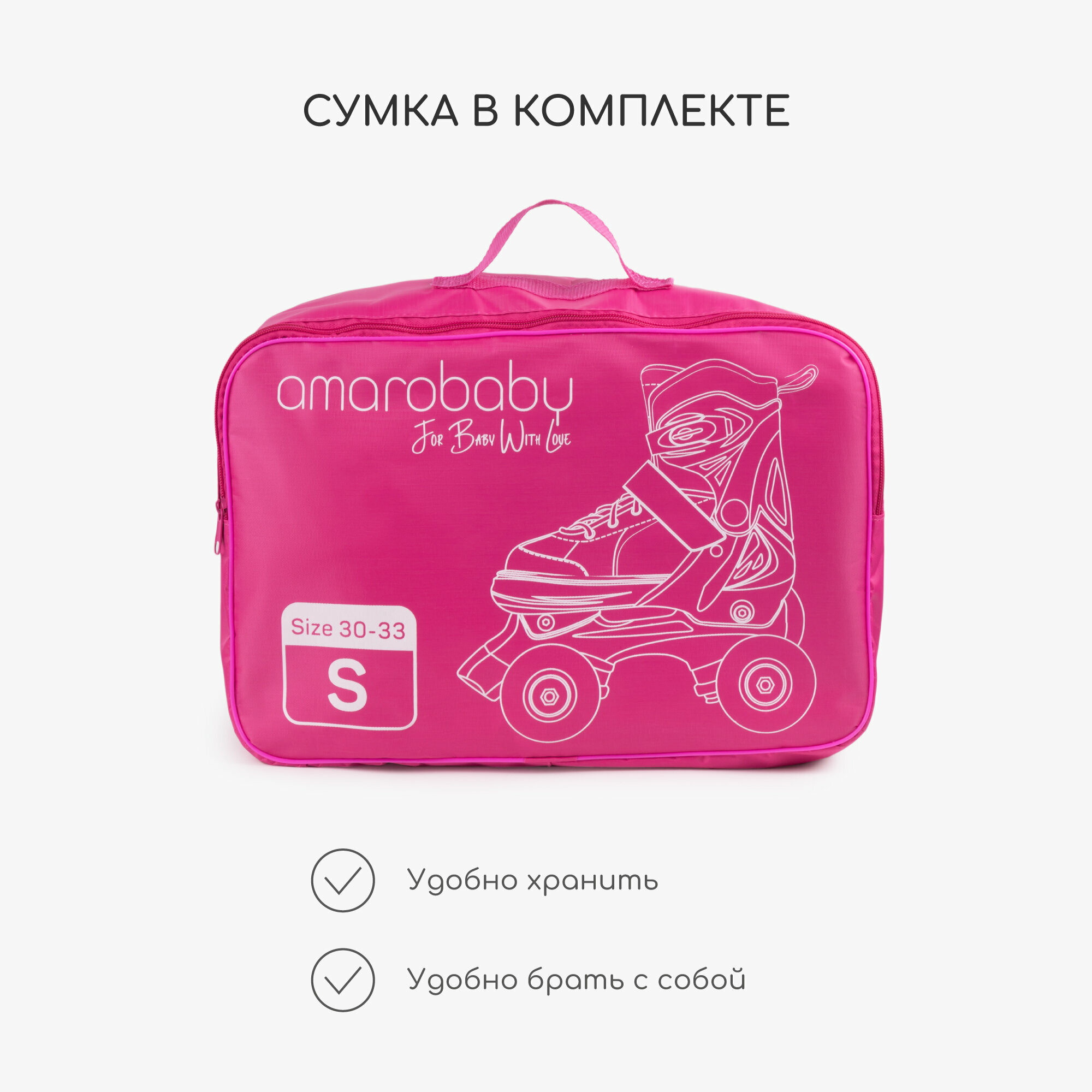 Ролики Amarobaby Glory раздвижные со светящимися колесами, черный/фуксия, размер 30-33