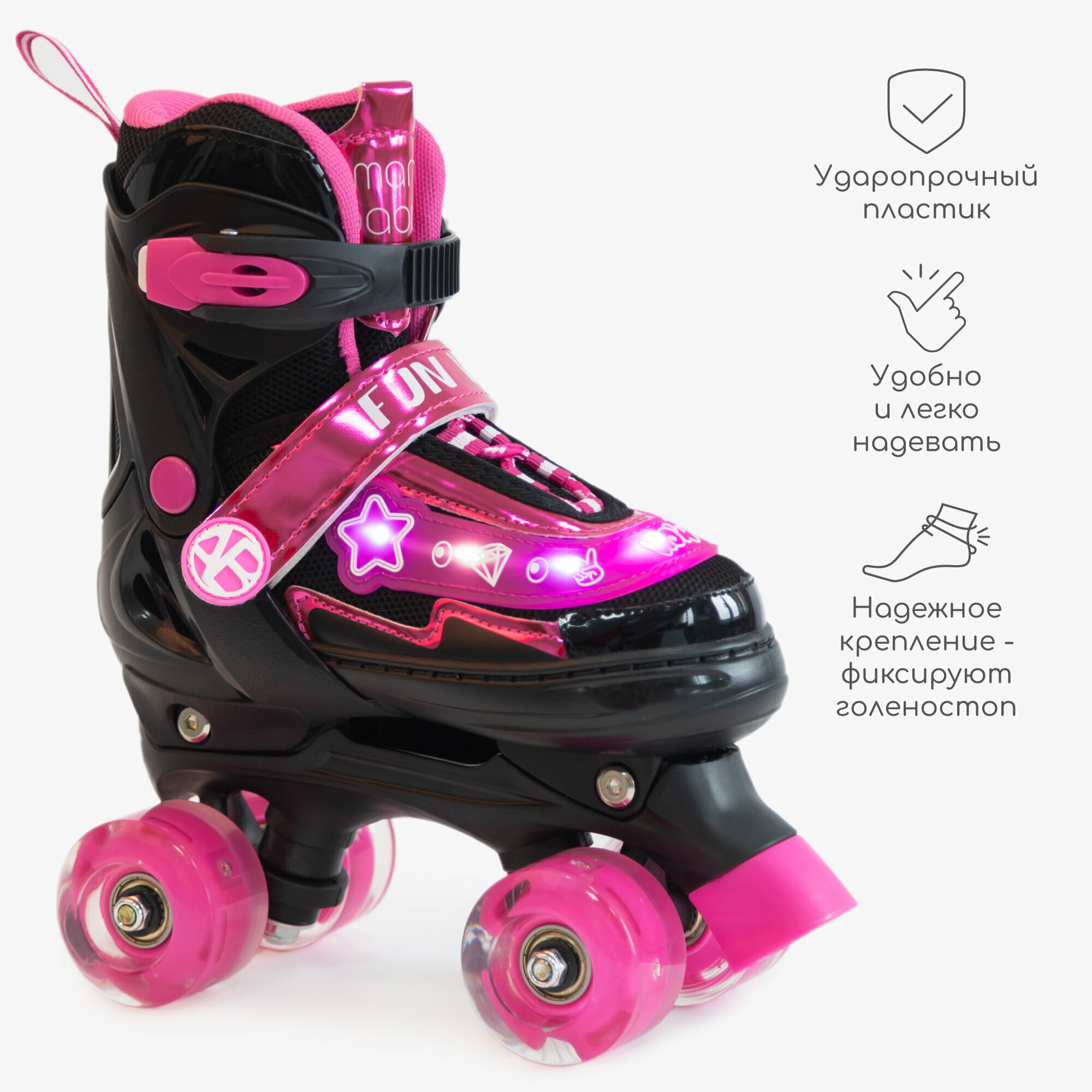 Ролики Amarobaby Glory раздвижные со светящимися колесами, черный/фуксия, размер 26-29