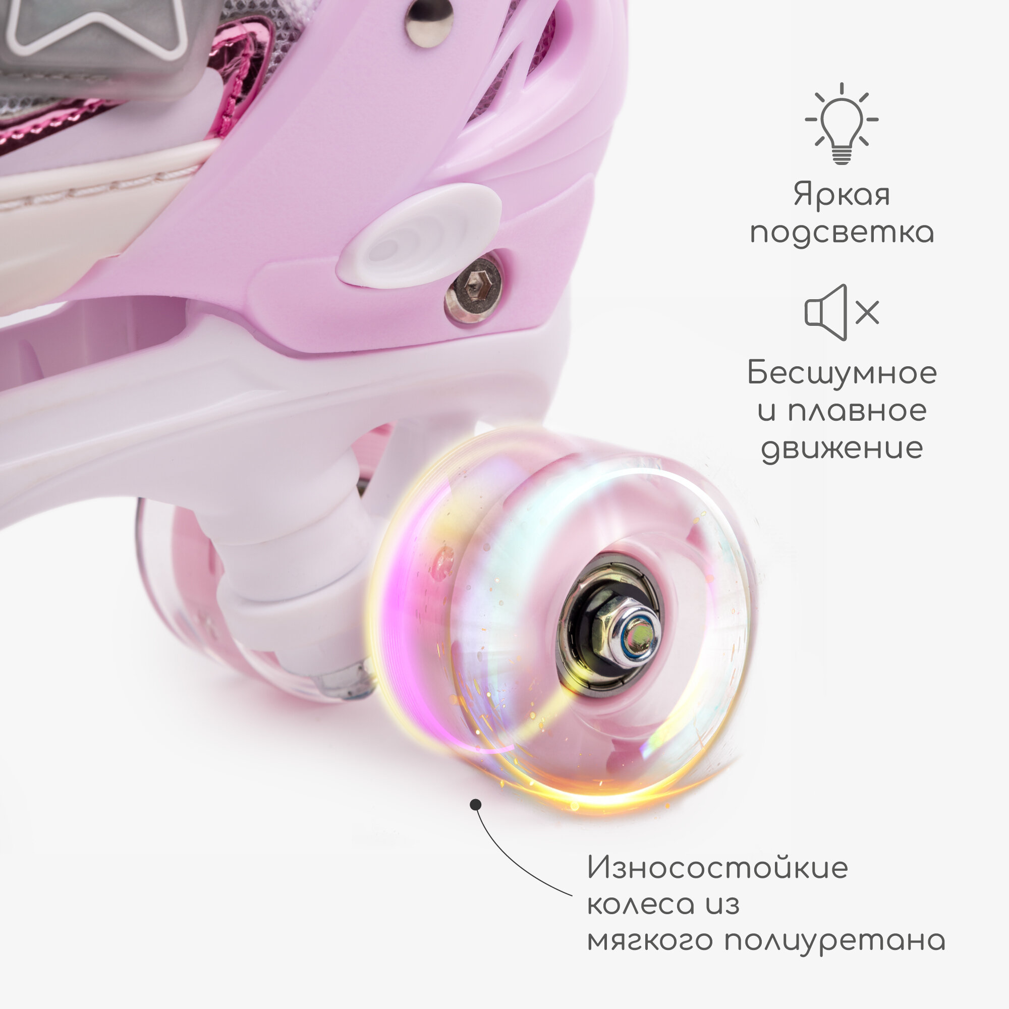 Ролики Amarobaby Glory раздвижные со светящимися колесами, бежевый/розовый, размер 30-33