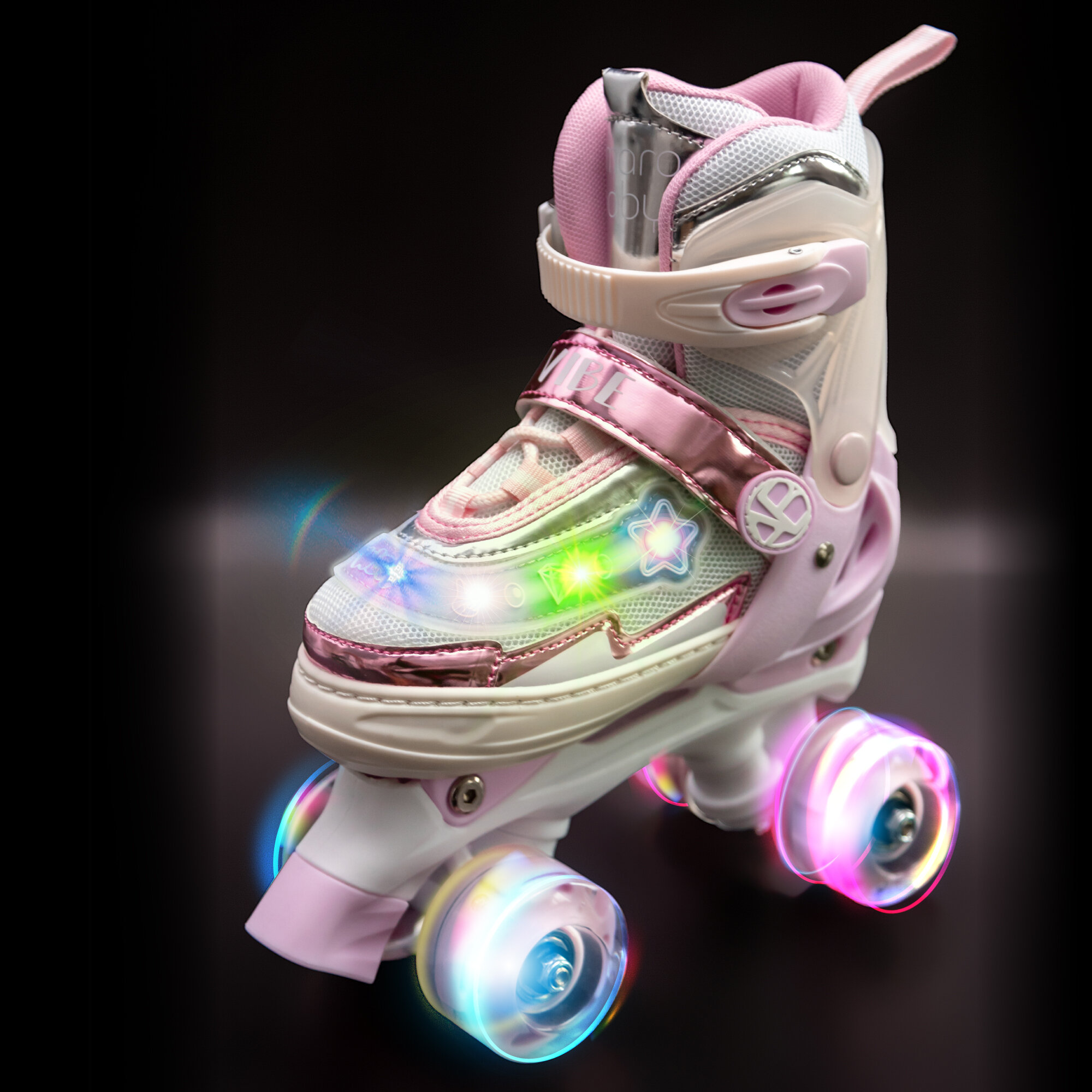 Купить Ролики Amarobaby Glory раздвижные со светящимися колесами, бежевый/розовый, размер 26-29