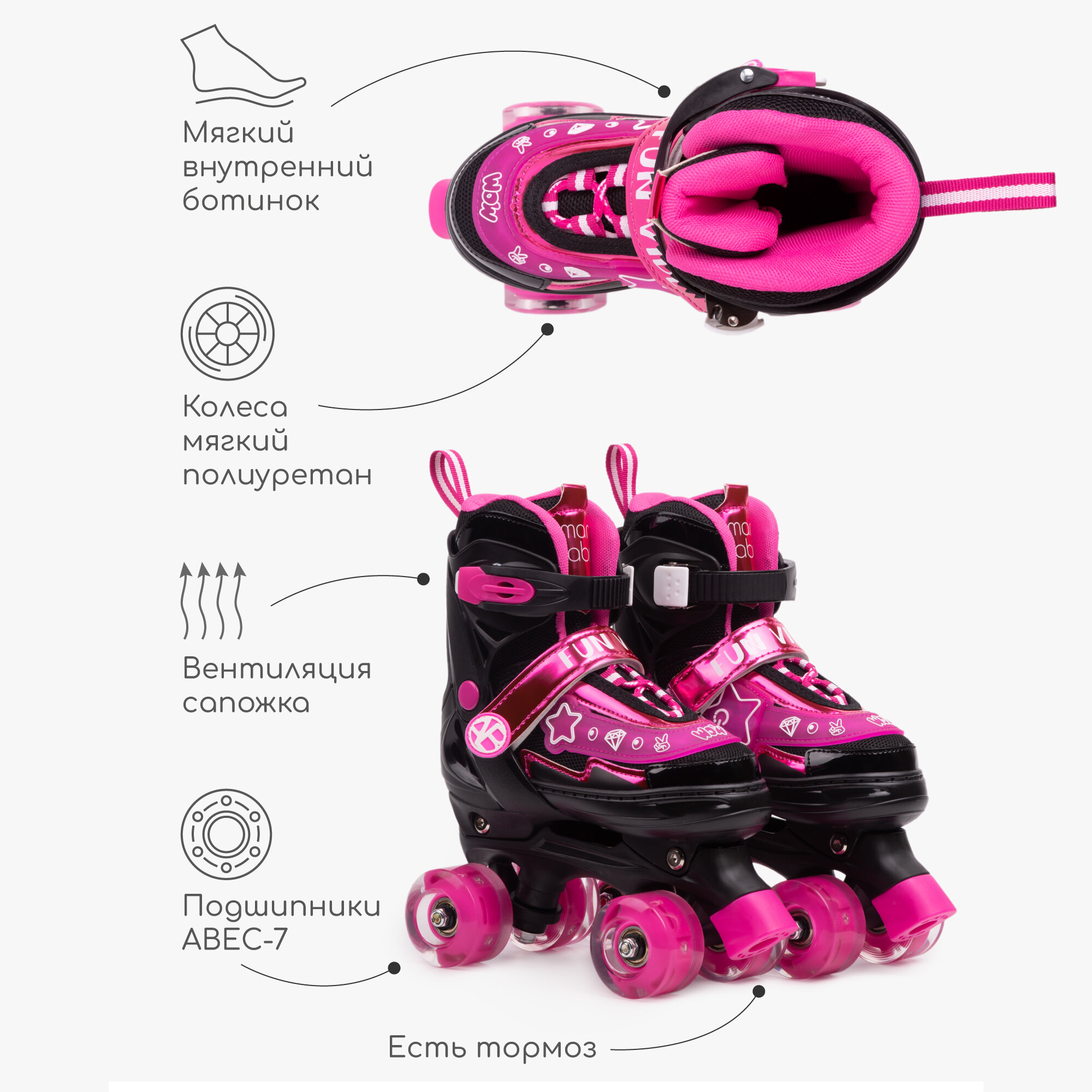 Ниже Вы можете прочитать отзывы на Ролики Amarobaby Glory раздвижные со светящимися колесами, черный/фуксия, размер 26-29, ознакомится с подробными характеристиками, посмотреть интересные обзоры и фотографии на Ролики Amarobaby Glory раздвижные со светящимися колесами, черный/фуксия, размер 26-29.