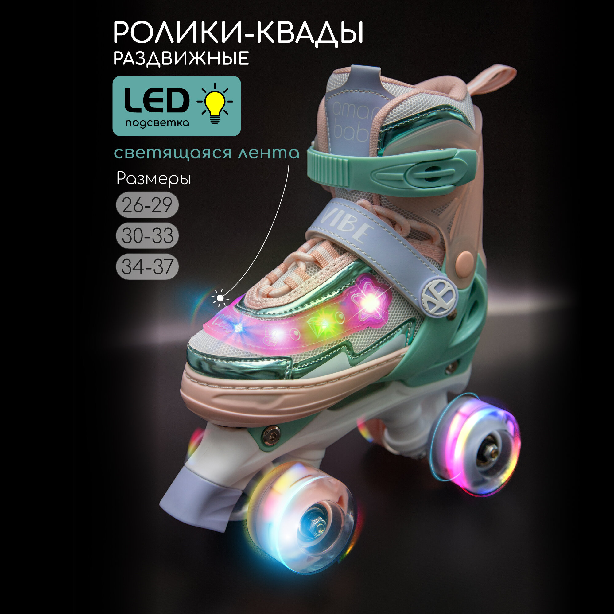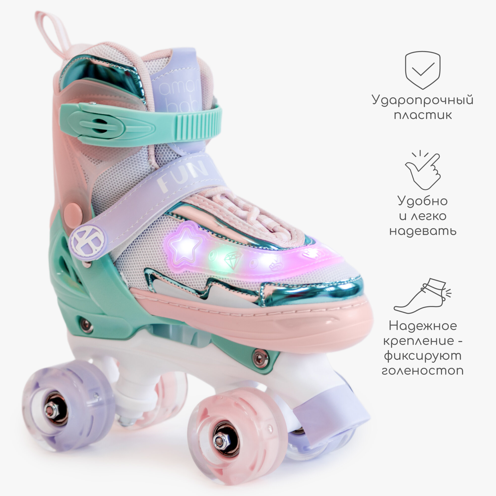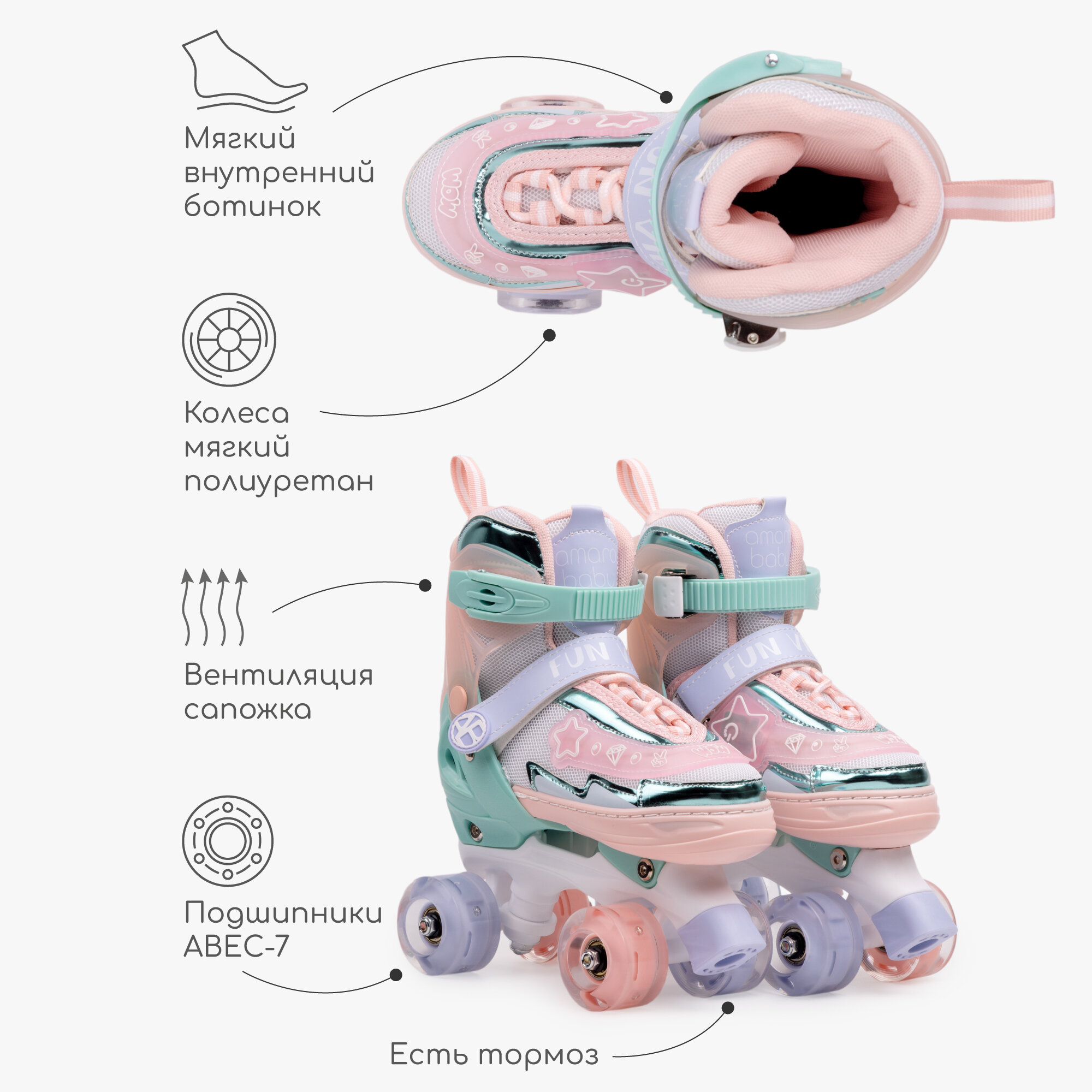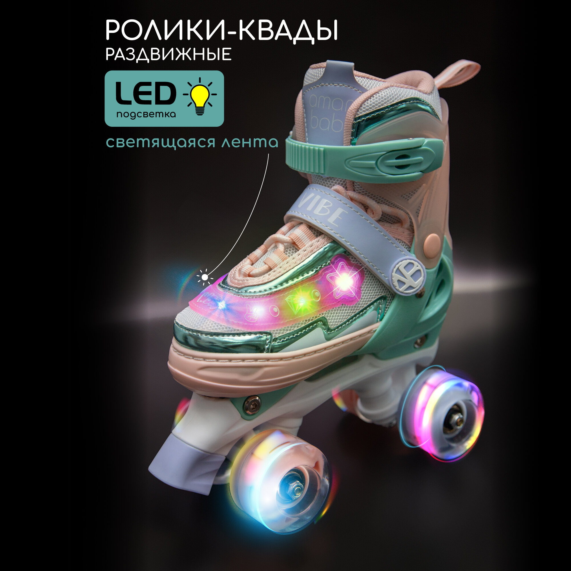 Ролики Amarobaby Glory раздвижные со светящимися колесами, бежевый/розовый, размер 30-33
