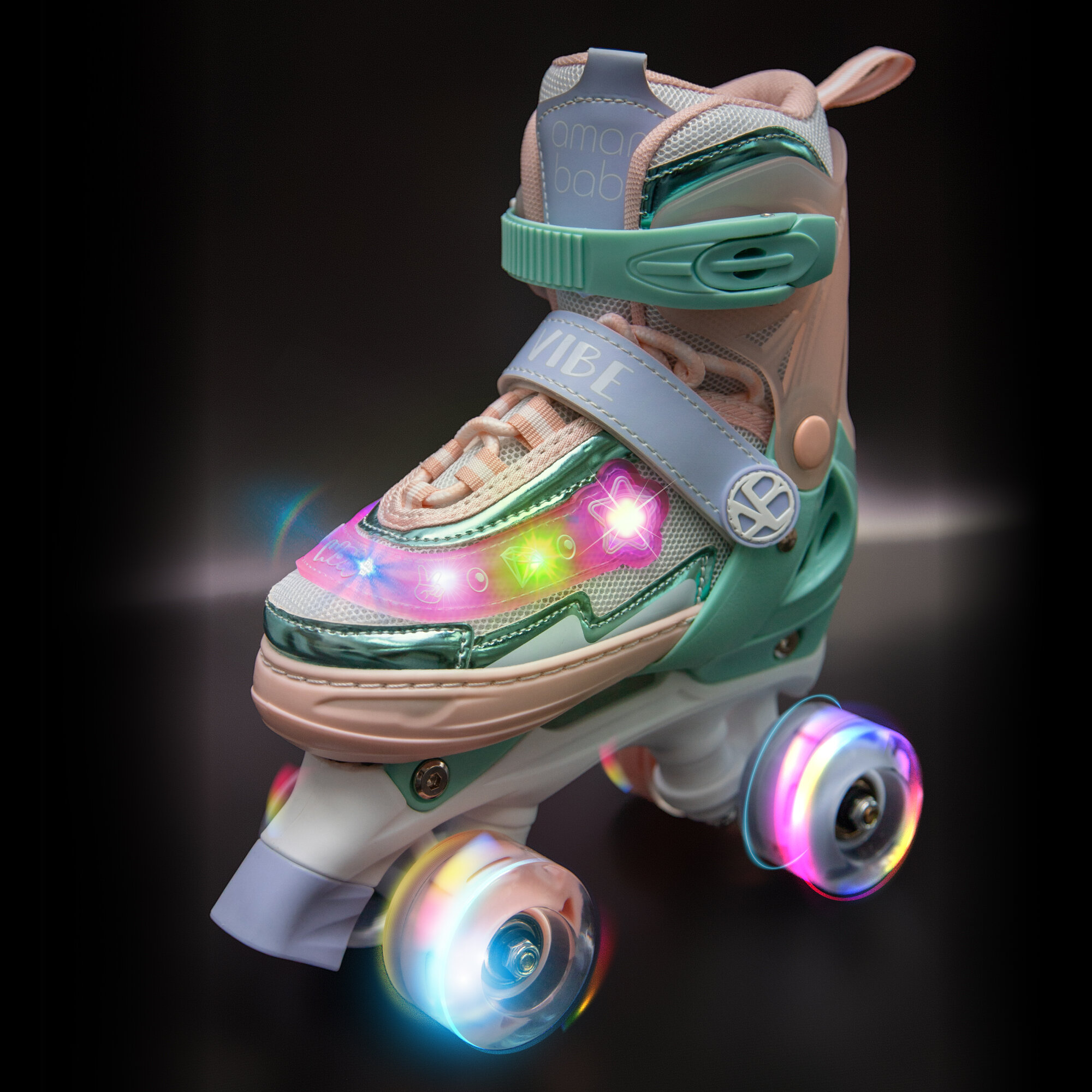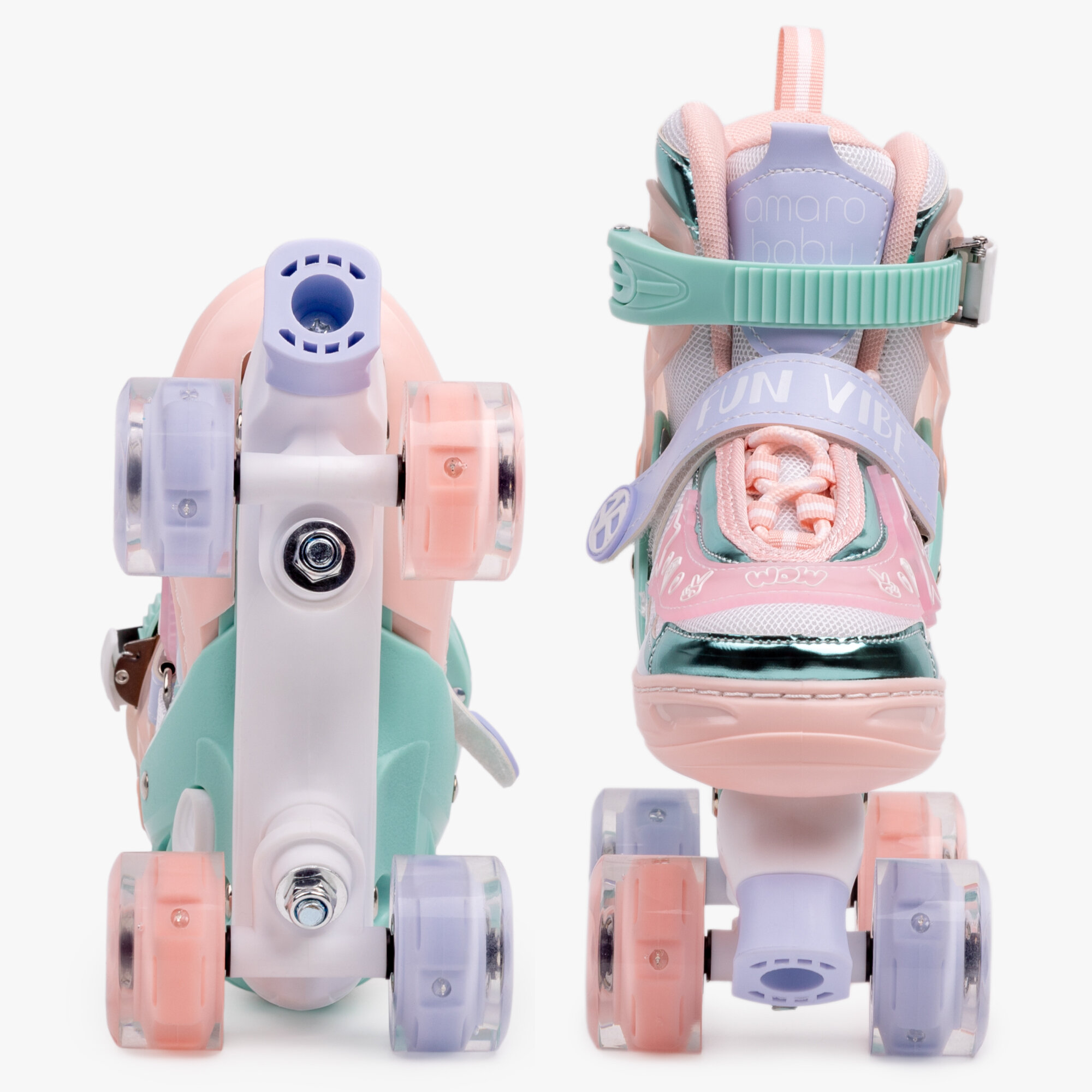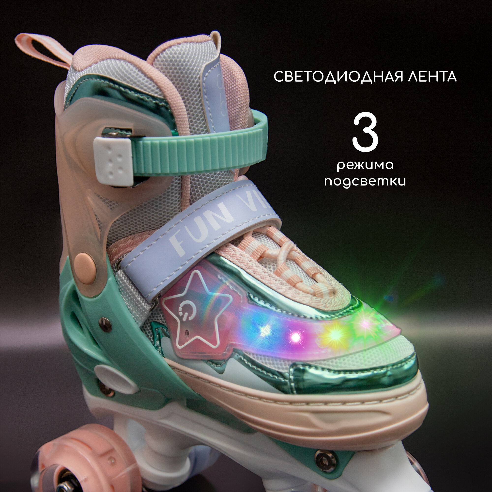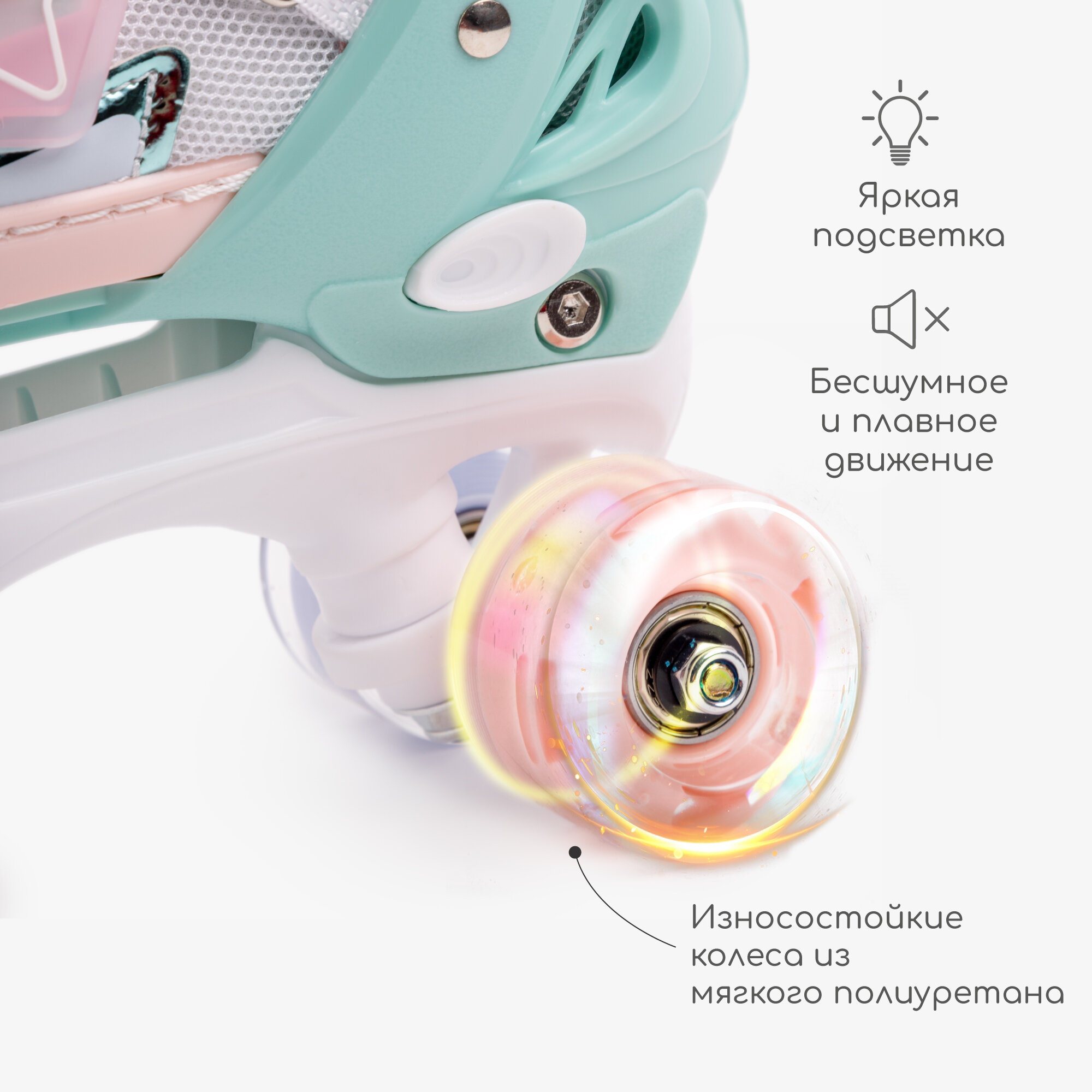 Ролики Amarobaby Glory раздвижные со светящимися колесами, бежевый/розовый, размер 30-33