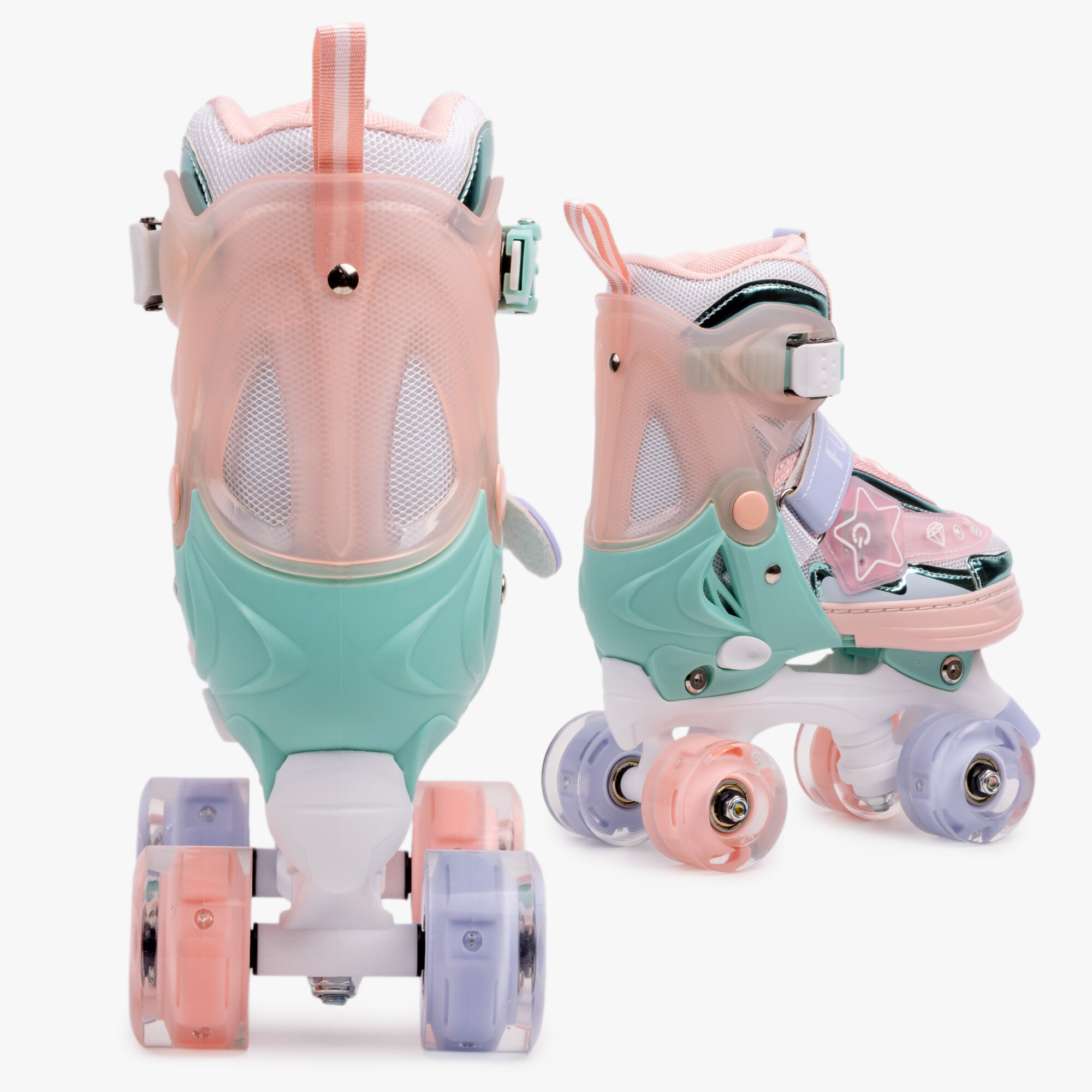 Ролики Amarobaby Glory раздвижные со светящимися колесами, бирюзовый/оранжевый, размер 34-37