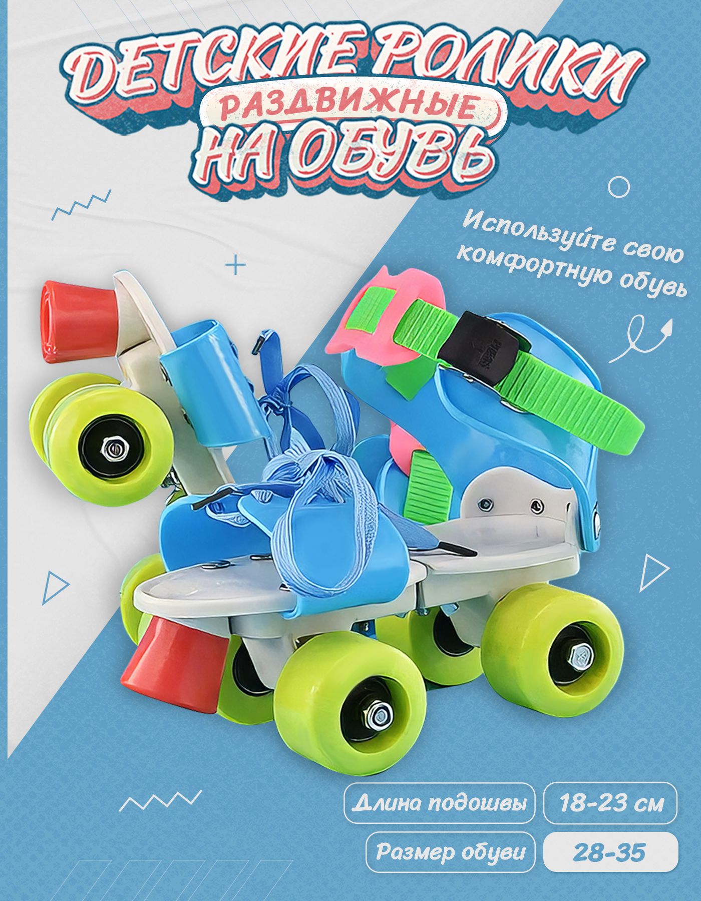 Купить Раздвижные ролики квады на обувь Banwei Blue Green 18-23 см (28-35 размер)