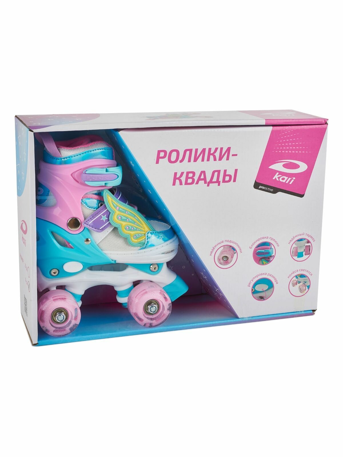 Купить Коньки роликовые, квады детские со светящимися колесами, голубой-розовый