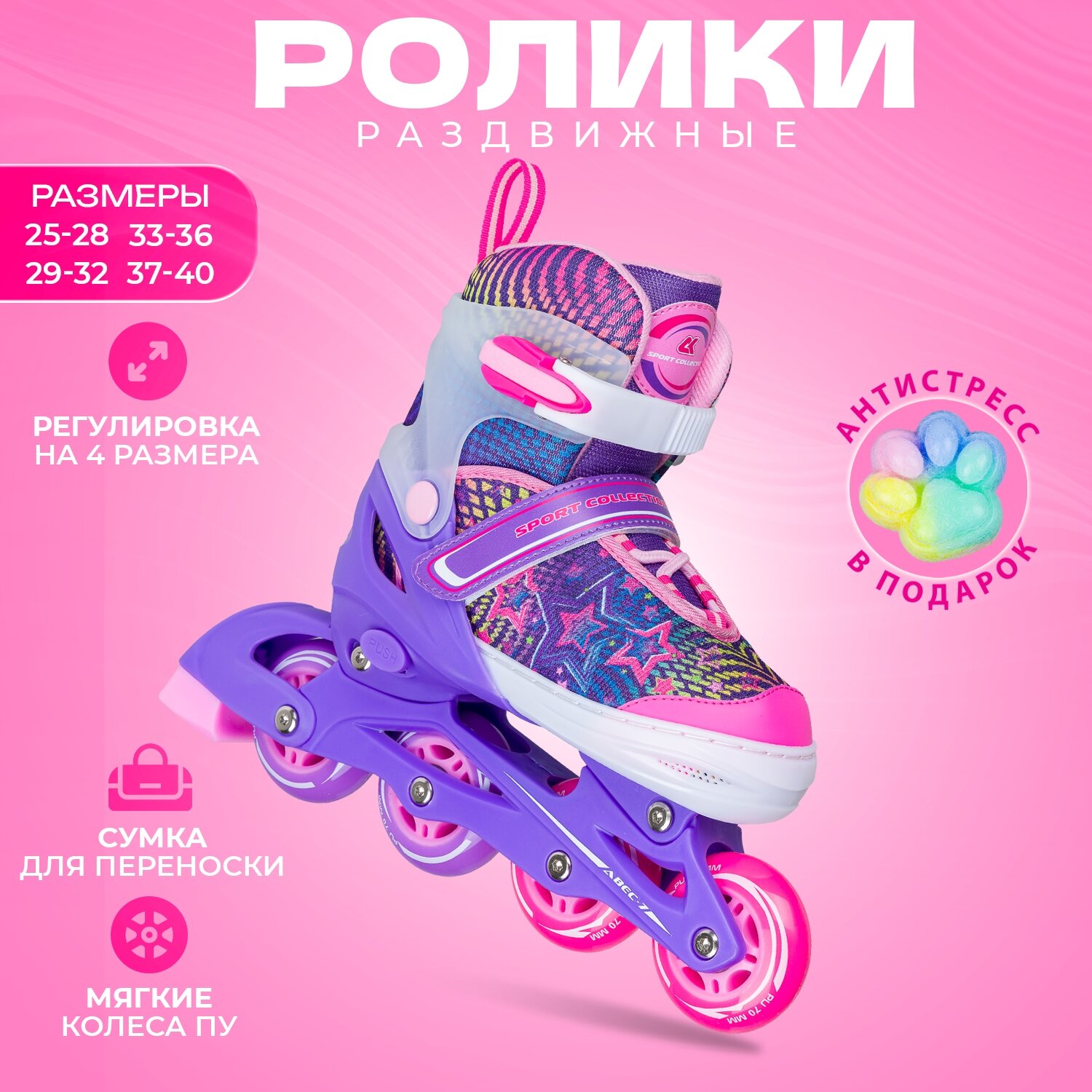 Раздвижные роликовые коньки CK-SK-P320-31 Pink XS 25-28