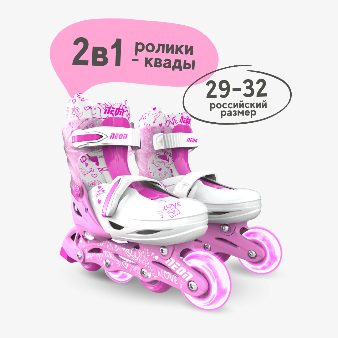 Купить Роликовые коньки YVolution Neon Combo Skates, розовый (размеры 29-32), раздвижные