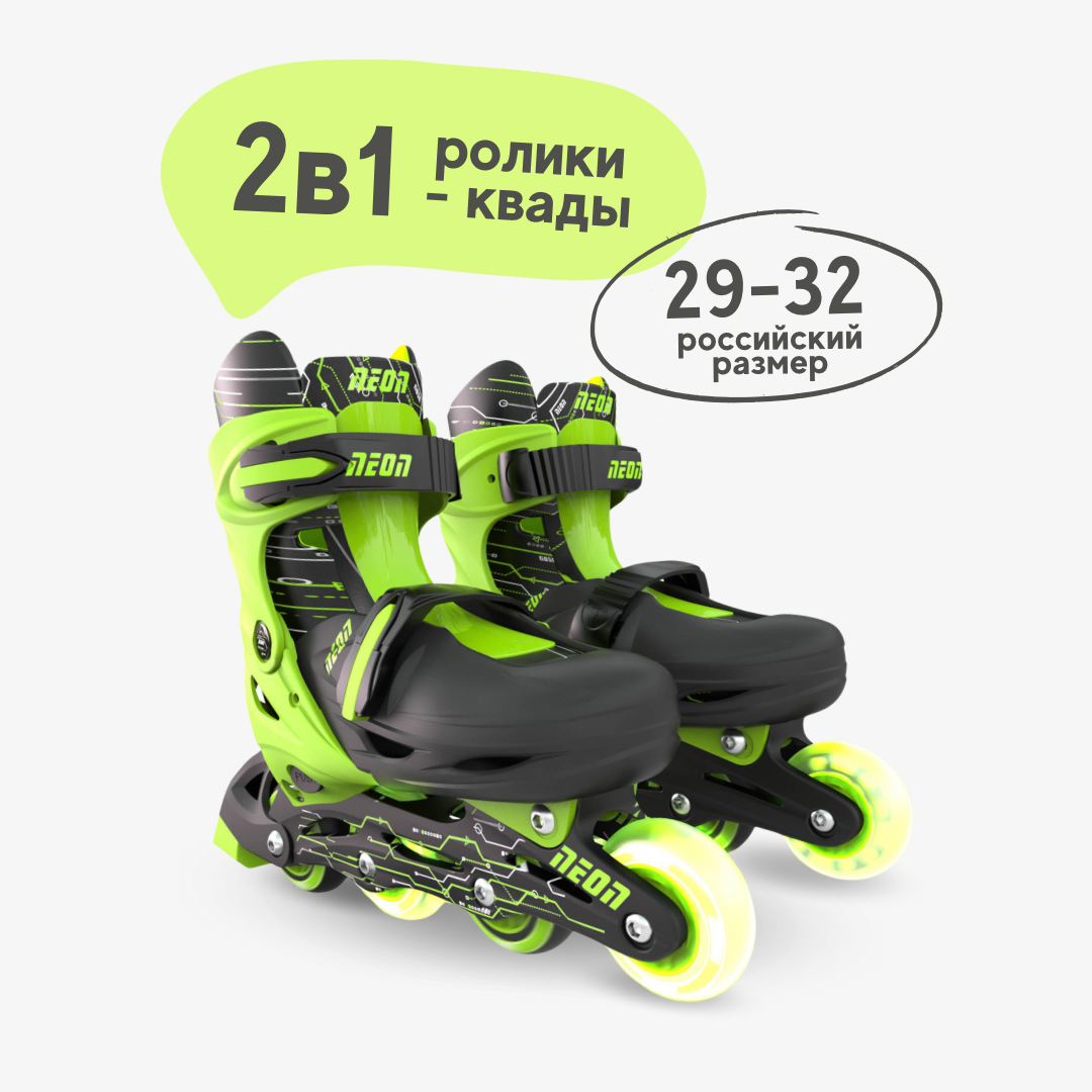 Купить Детские роликовые коньки Neon Combo Skates, размер 29-32, цвет зеленый