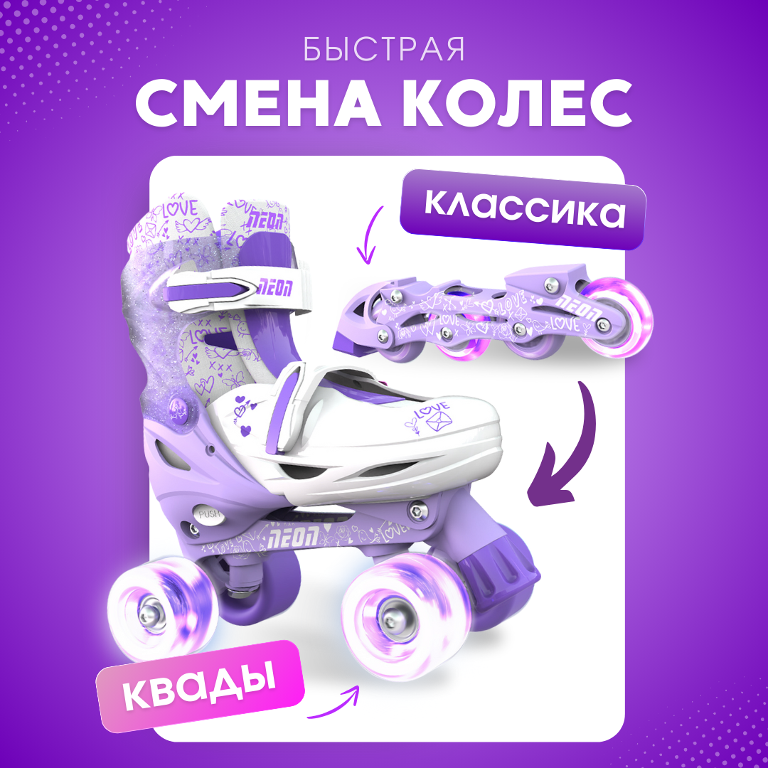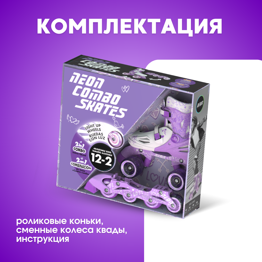 Купить Роликовые коньки YVolution Neon Combo Skates, фиолетовый (размеры 29-32), раздвижные