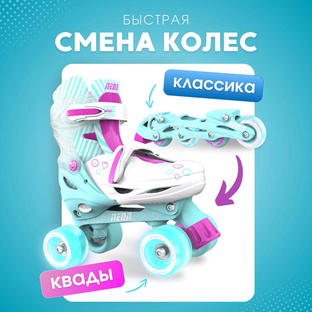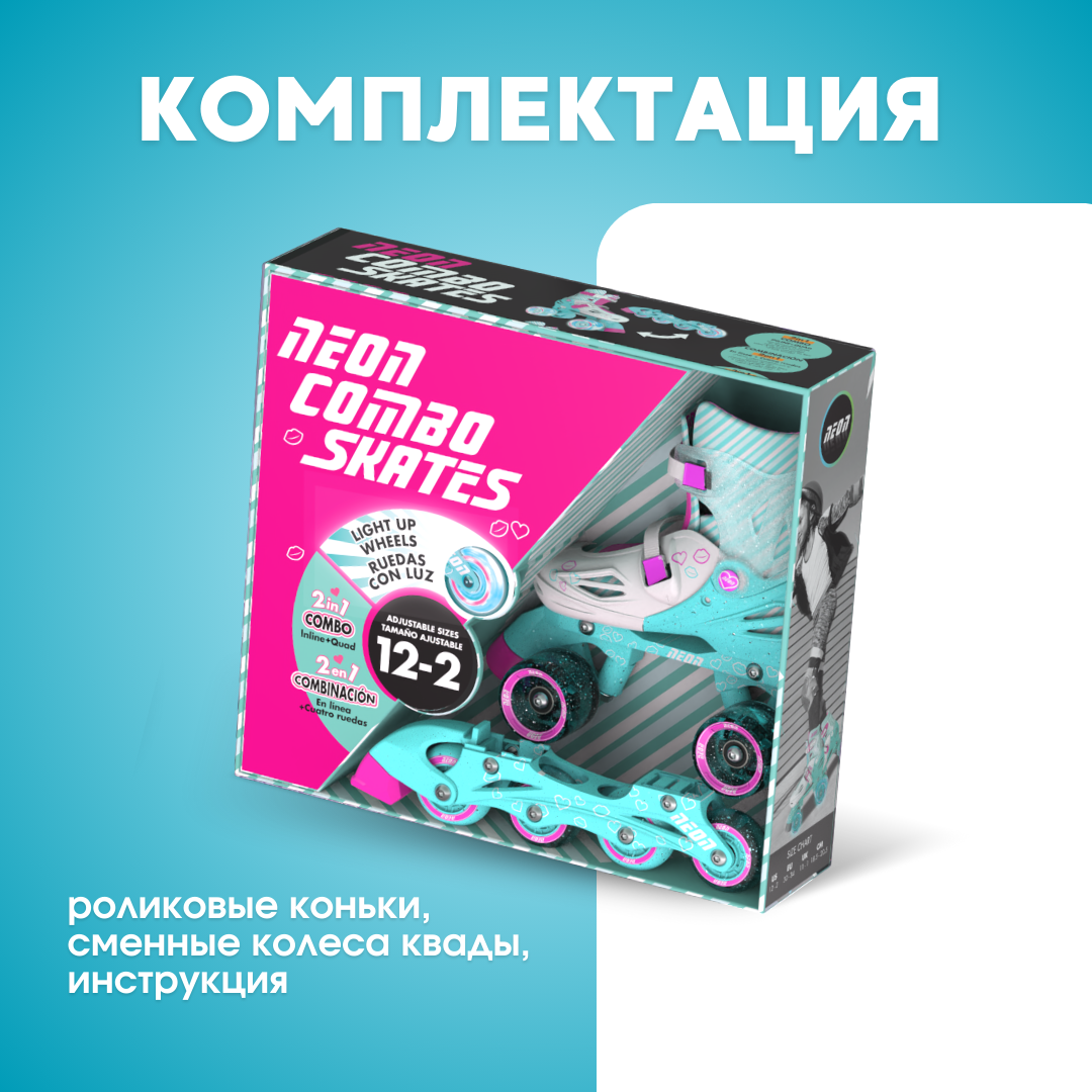 Купить Роликовые коньки YVolution Neon Combo Skates, бирюзовые (размеры 29-32), раздвижные