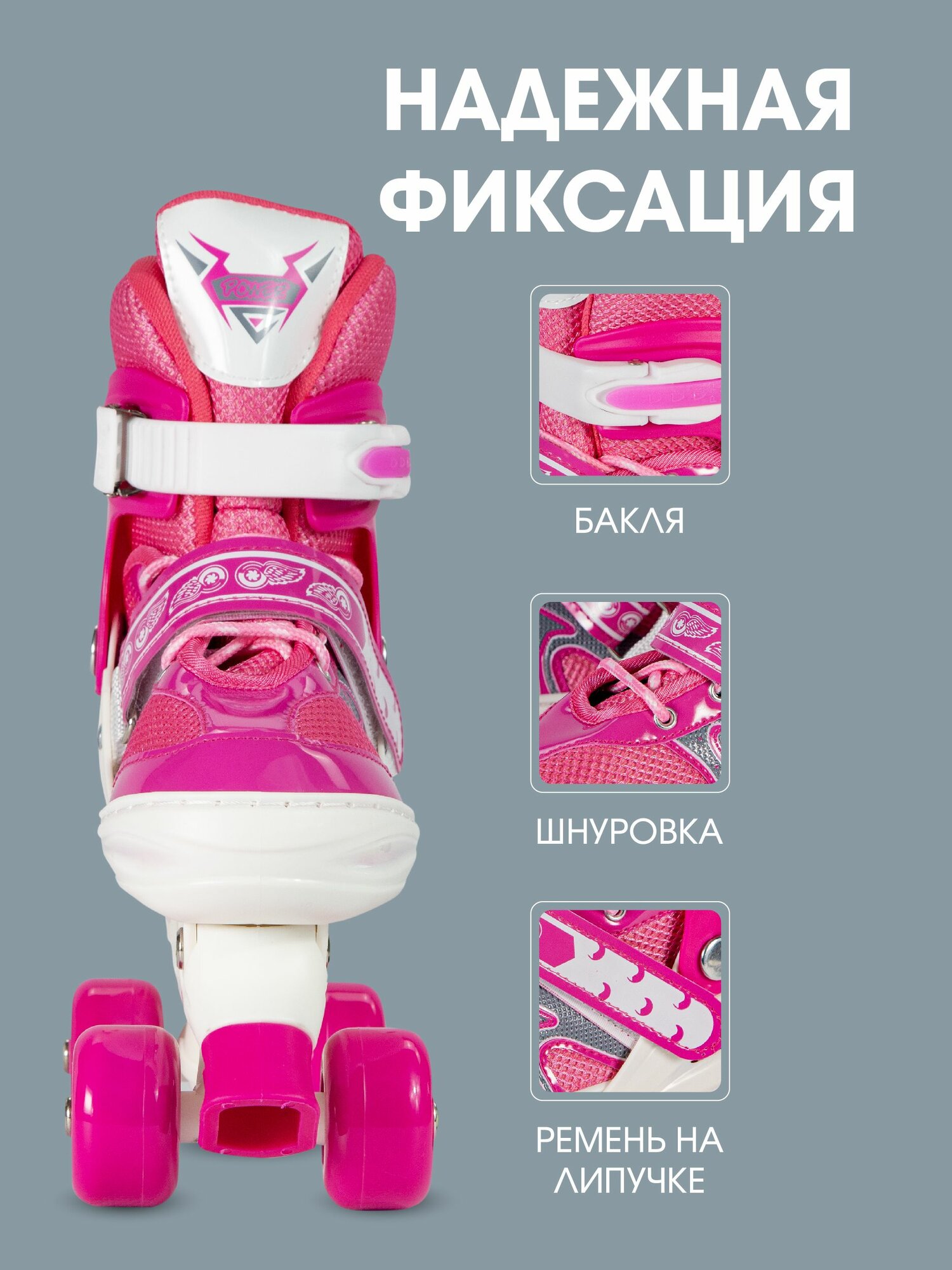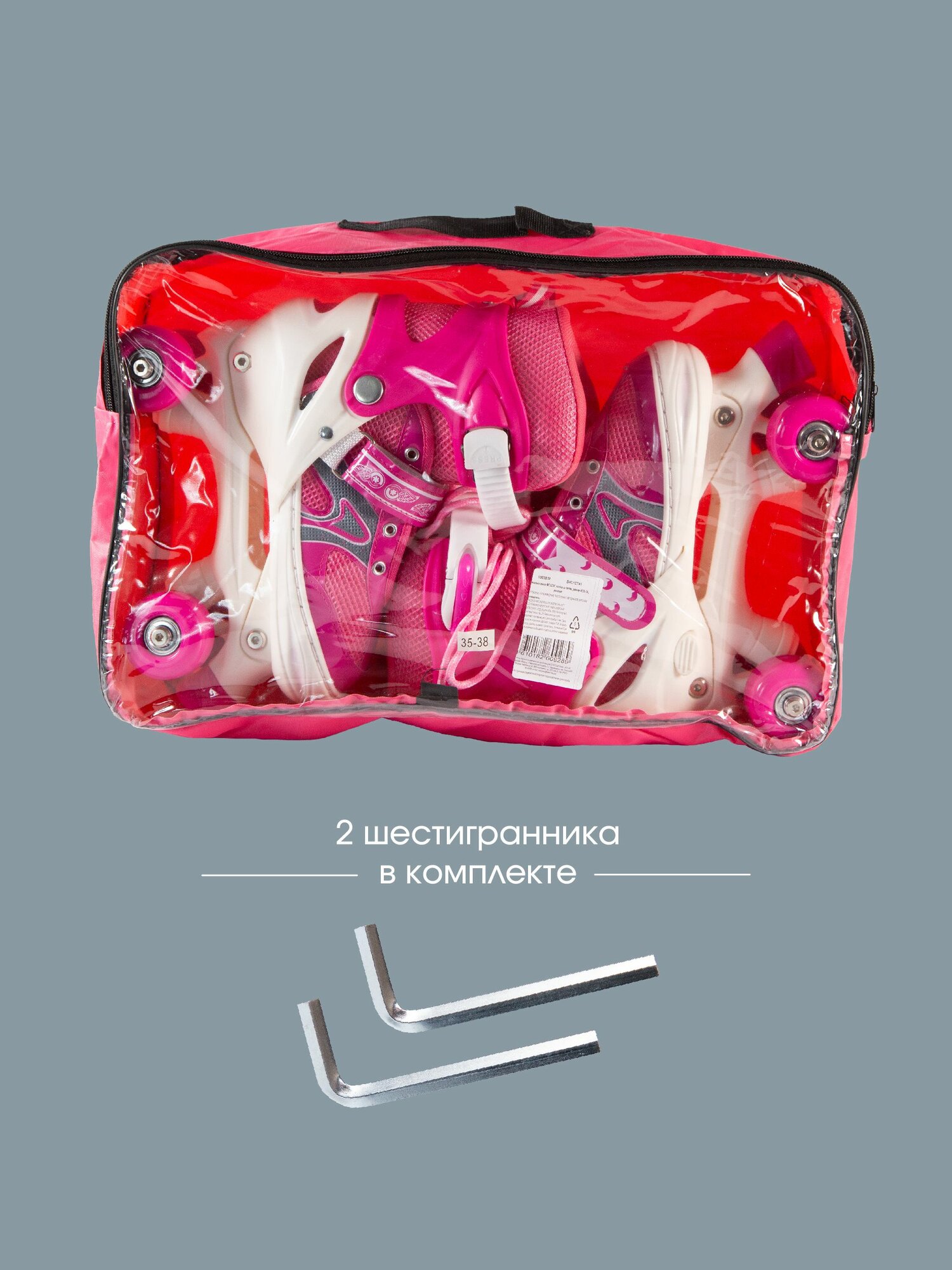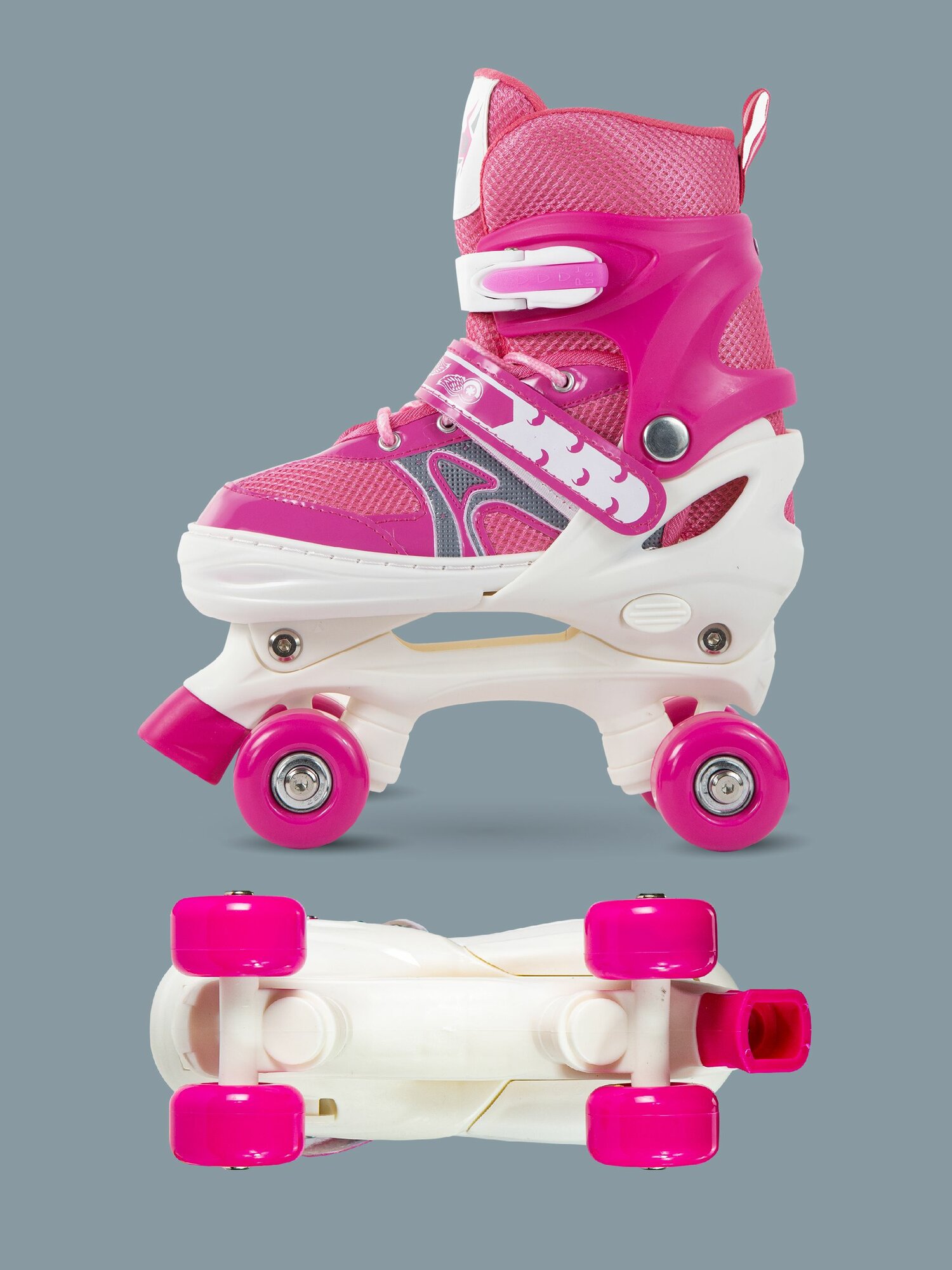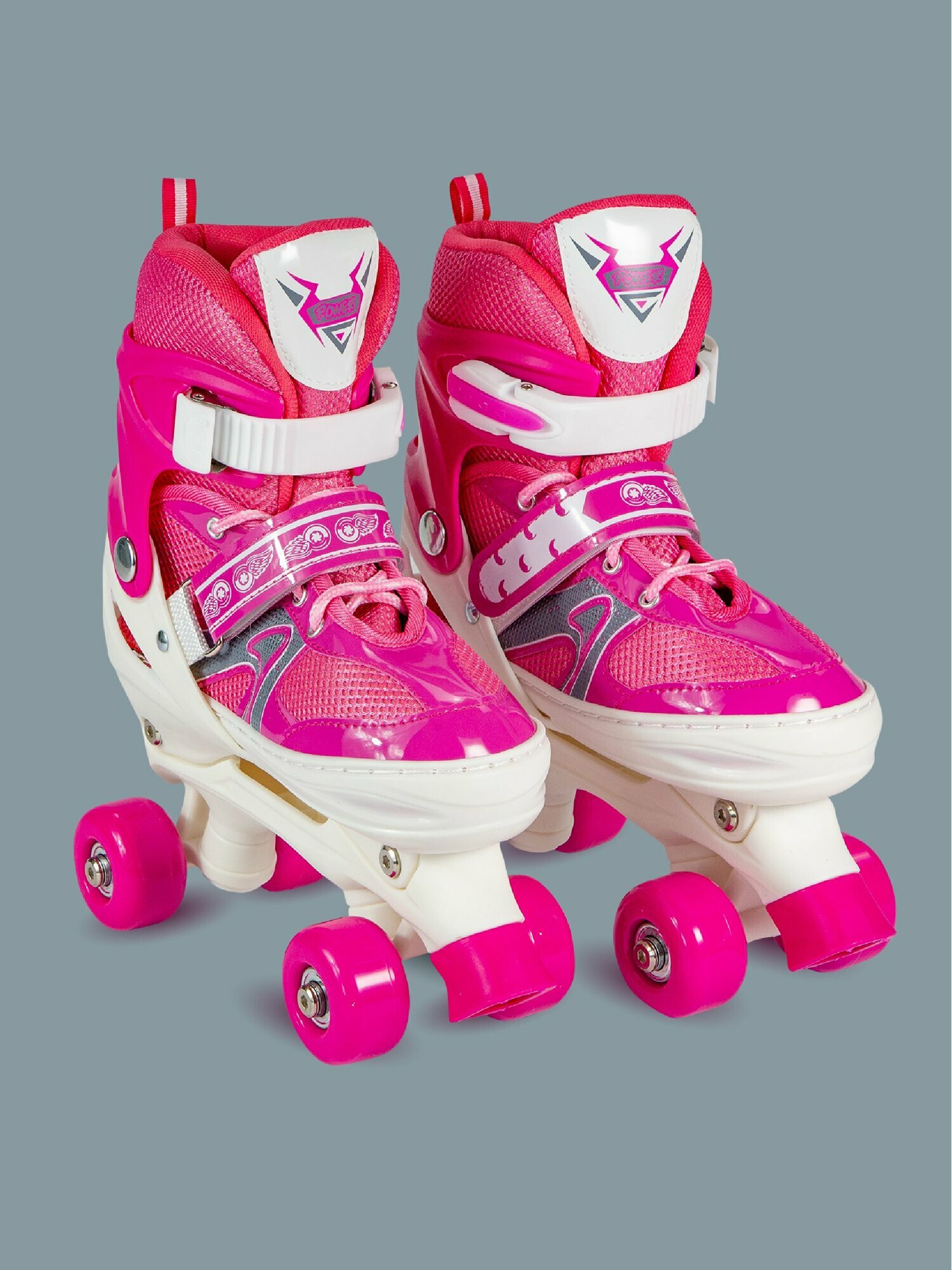 Купить Коньки роликовые квады, раздвижные светящиеся размер 33-36, розовые