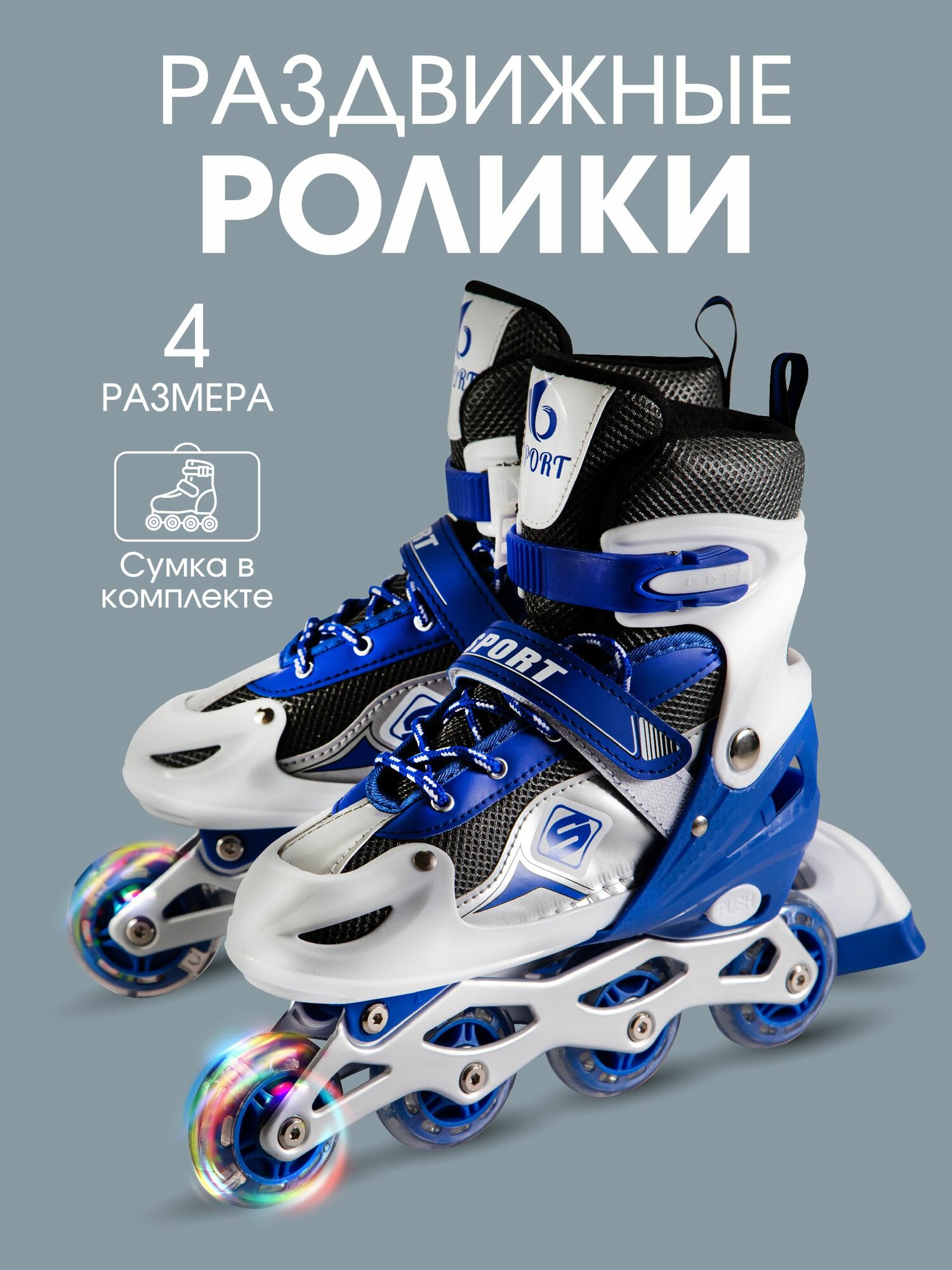 Купить Коньки роликовые в сумке, раздвижные светящиеся, размер 37-40, синие