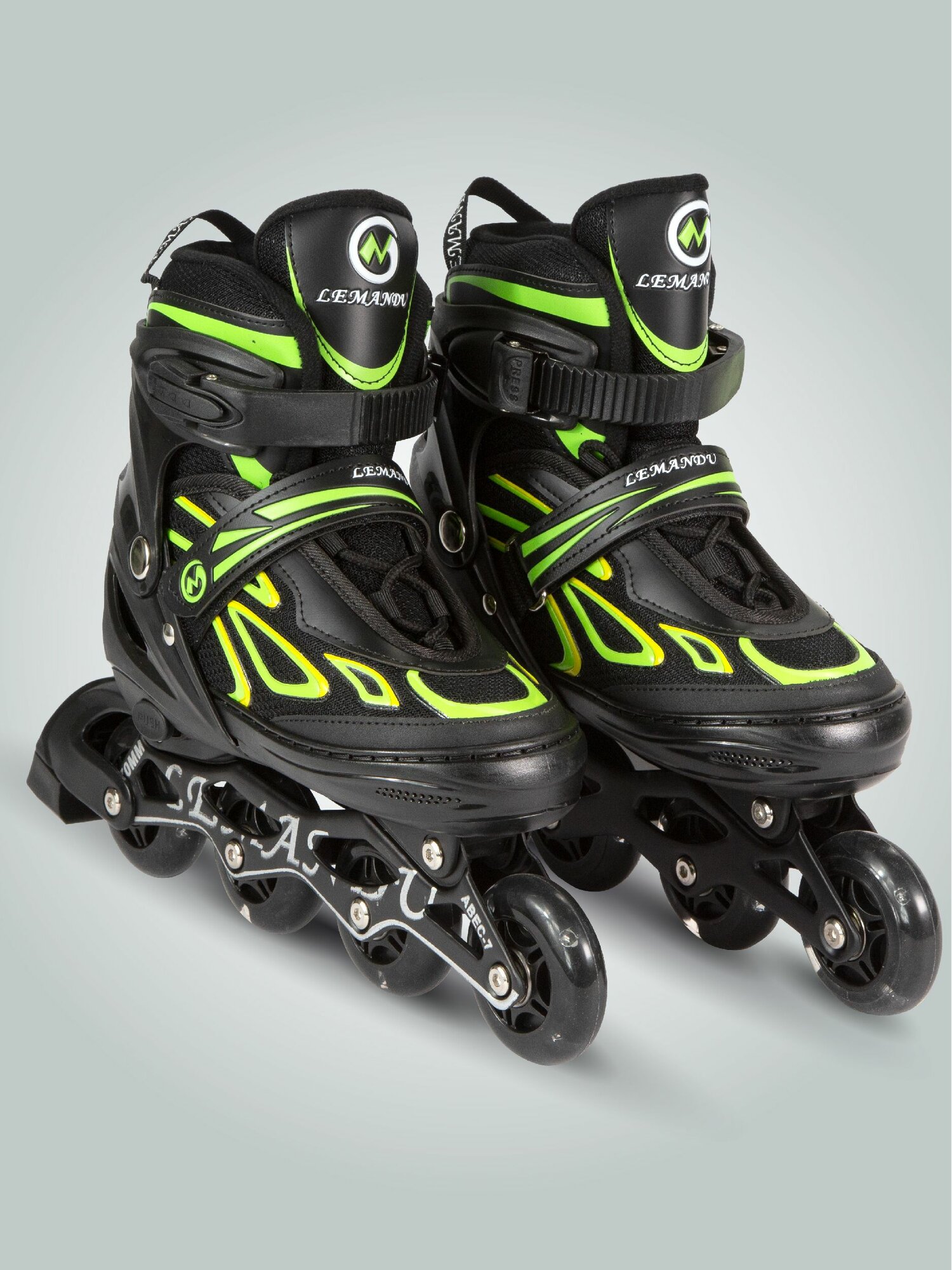 Купить Коньки роликовые в сумке, раздвижные светящиеся размер 33-36, черно-зеленые