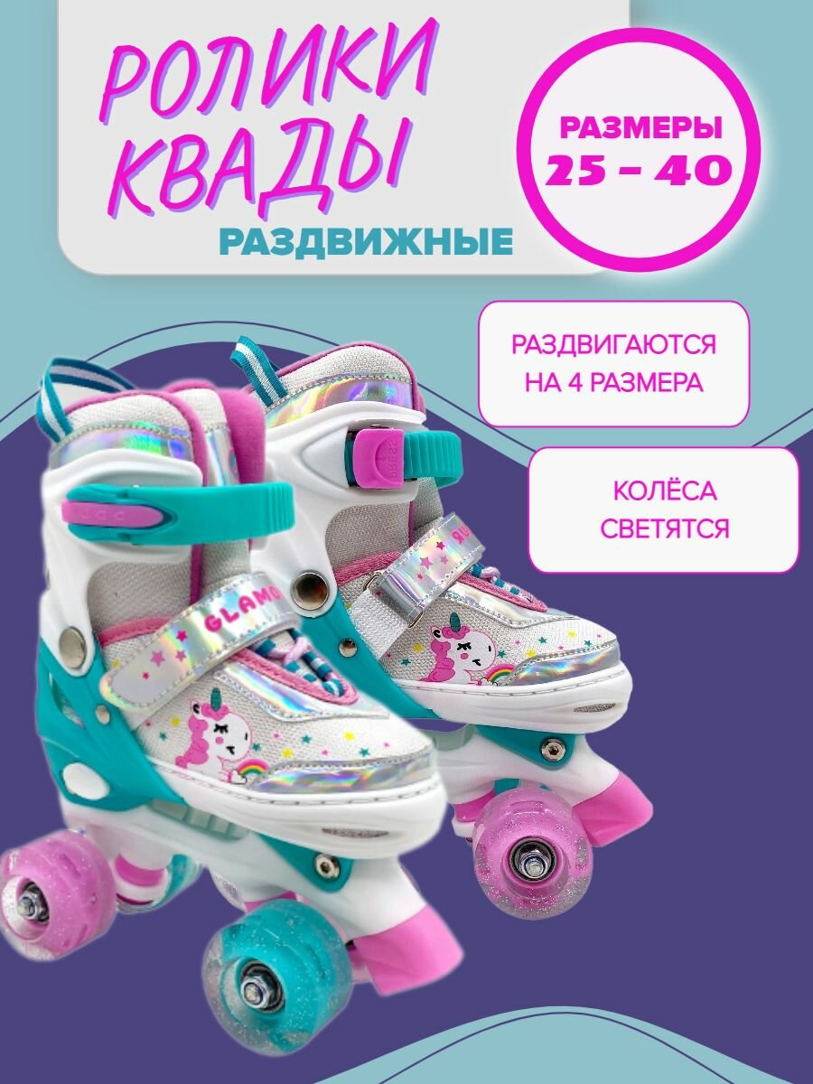 Ролик КВАДЫ, с LED-подсветкой колес, раздвижные, четырехколесные, детские интересное: